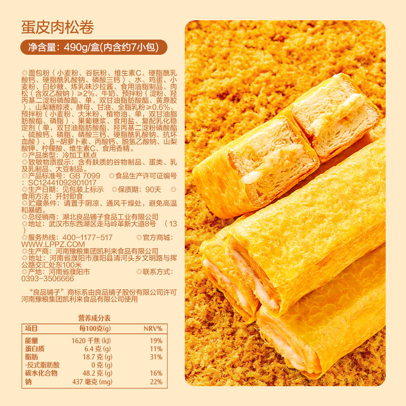 良品铺子蛋皮肉松卷整箱早餐食品糕点心面包吐司办公室休闲零食