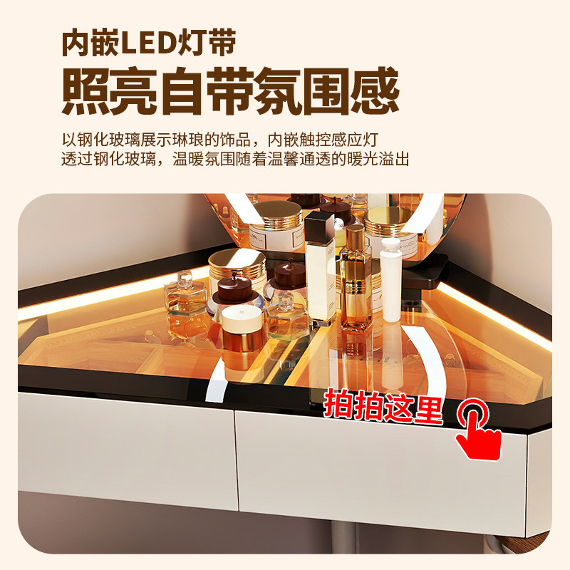 小户型拐角梳妆台卧室家用墙角三角化妆桌带化妆镜转角床头柜一体