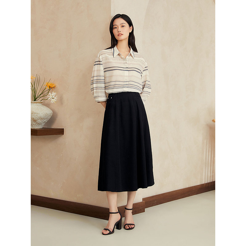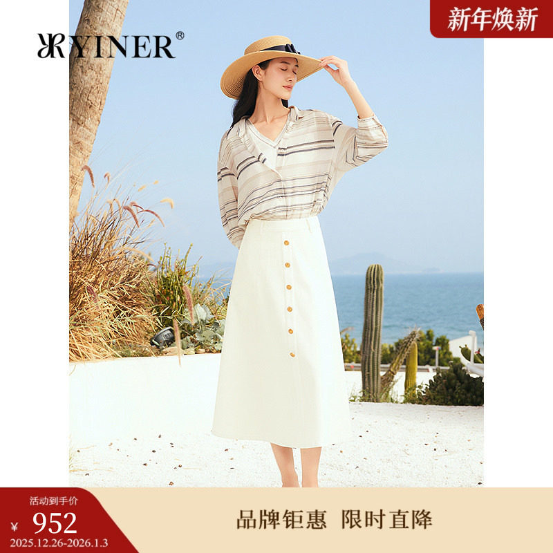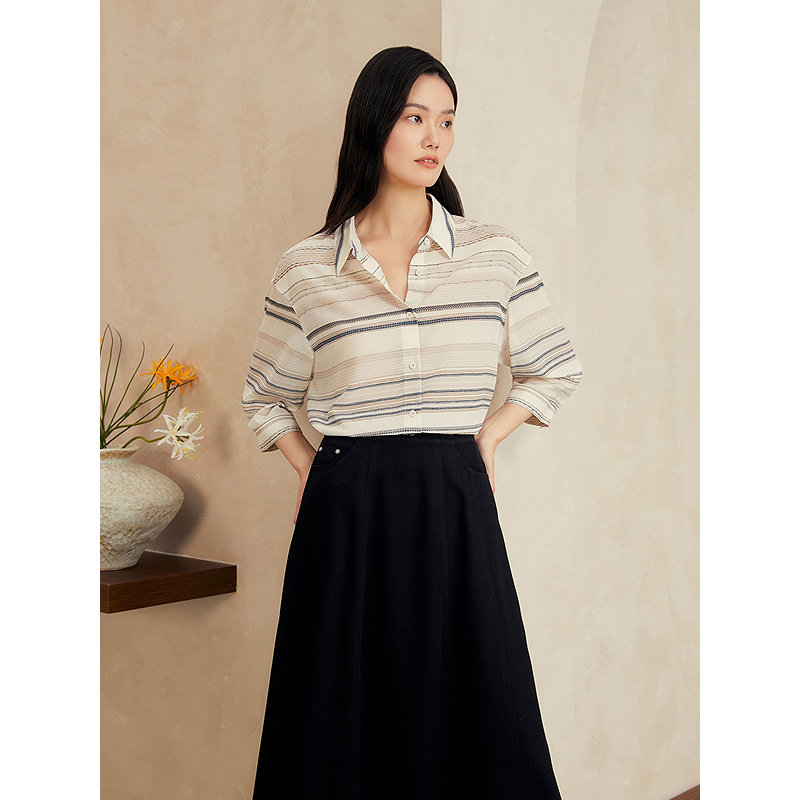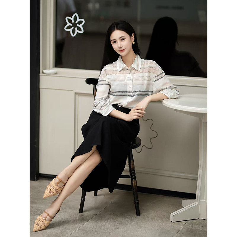 【真丝系列】YINER音儿2025夏季新款弹力桑蚕丝衬衫撞色条纹上衣