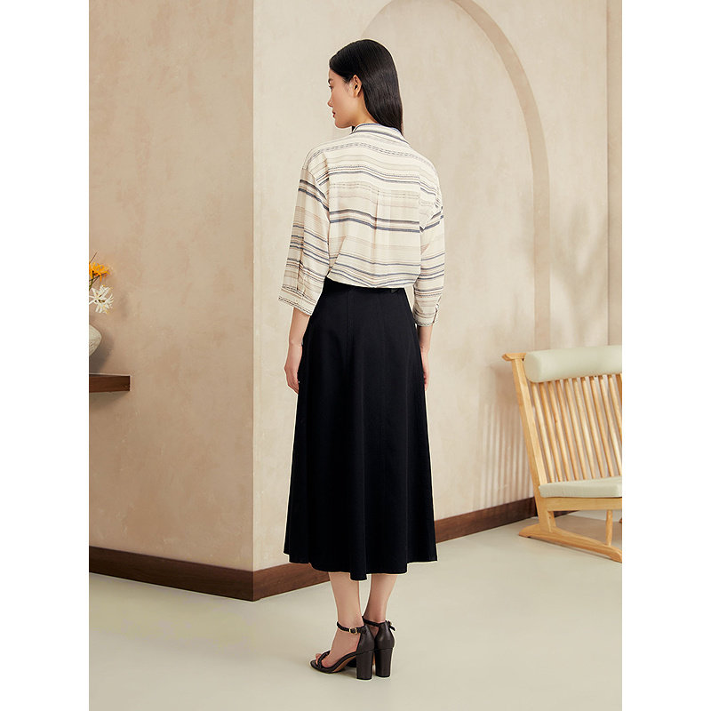 COCOBELLA设计感小立领黑白条纹衬衫外套女仿棉麻休闲衬衣SR0019