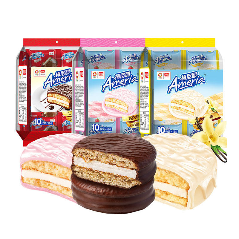 唇动草莓味巧克力派夹心蛋糕点零食食品营养学生早餐速食面包整箱