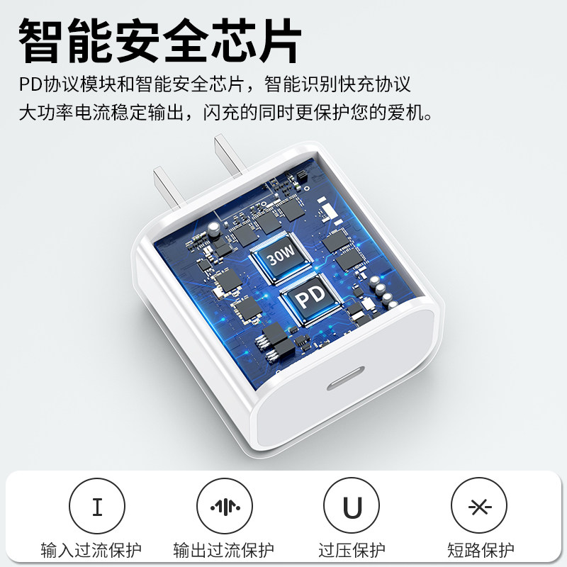 30W正品适用苹果iphone14充电器头15pro数据线16/13/12p插头x手机plus专用xr快充PD套装11原max速冲20W