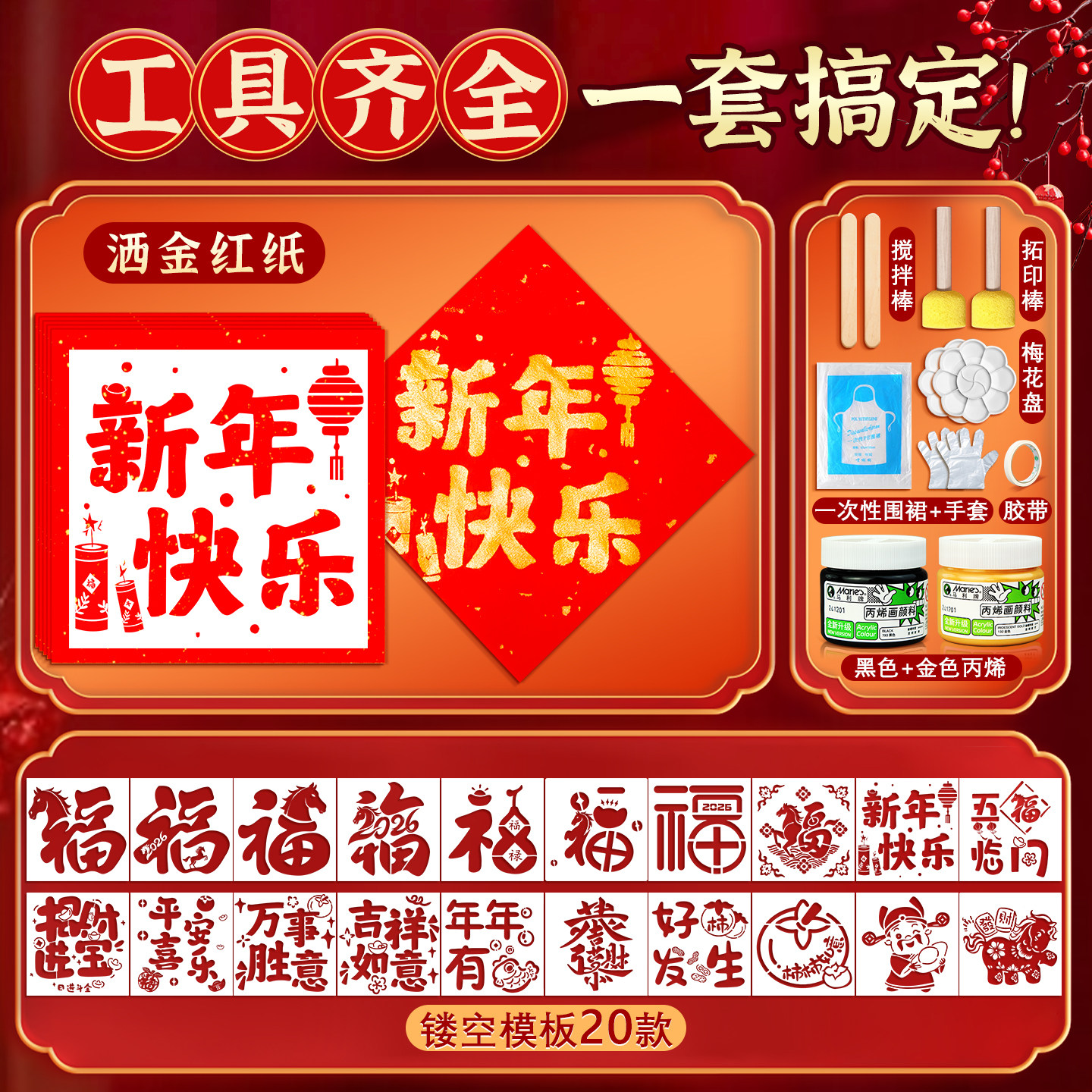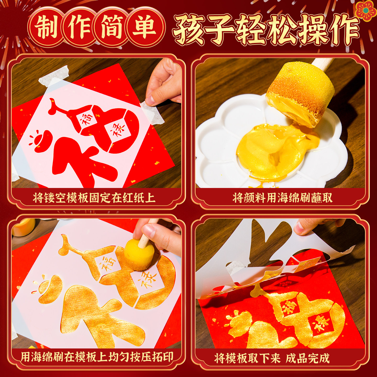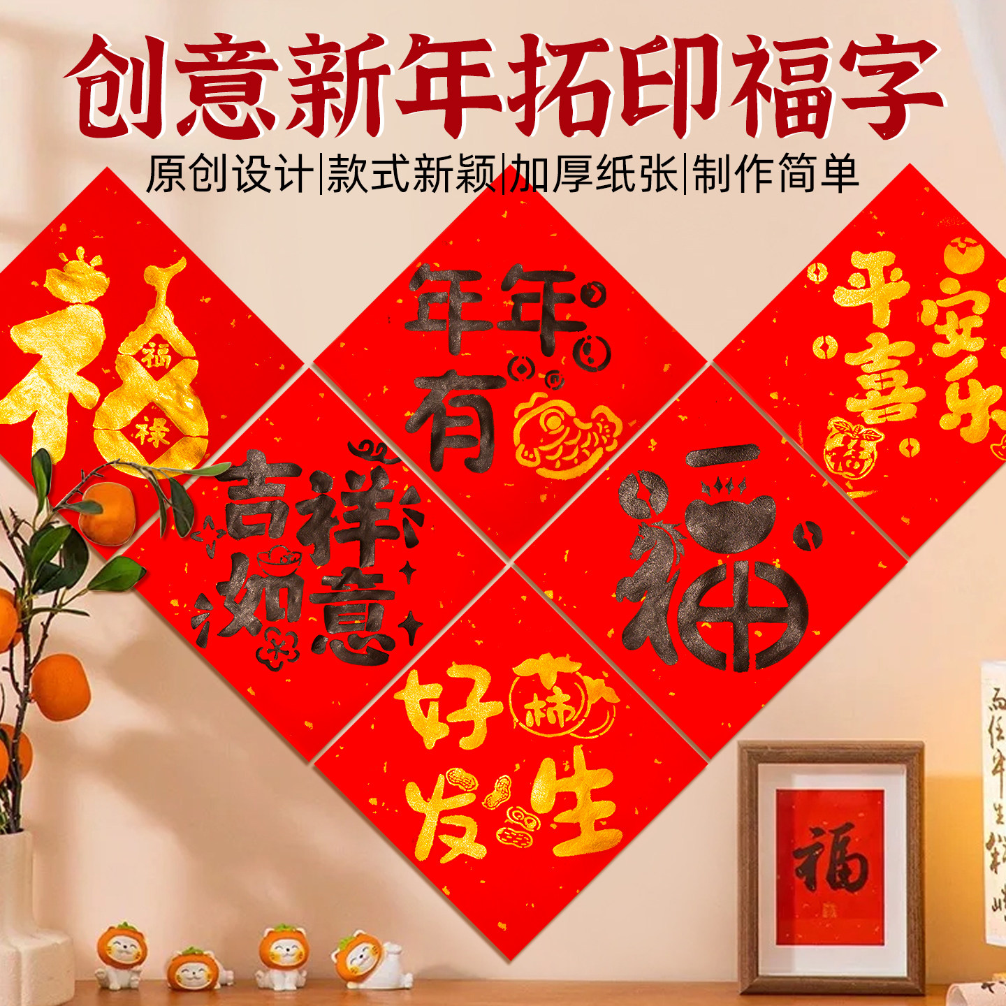 2026年洒金万年红福字拓印年画模板儿童手工材料包装饰相框新年拓印新年马年手工diy相框春节镂空模具幼儿园