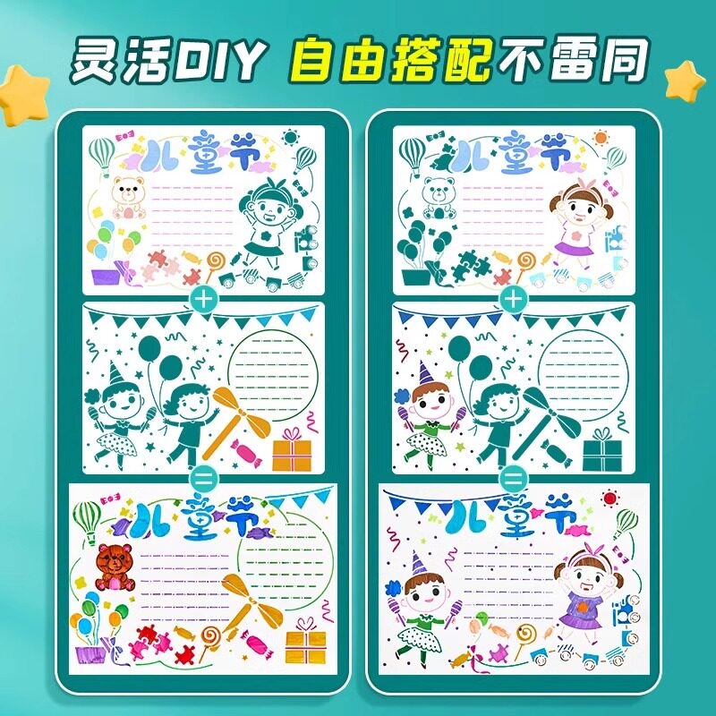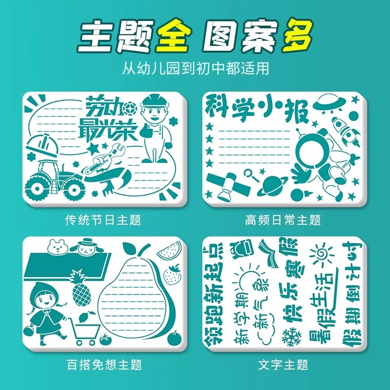 小学生镂空手抄报模板大全劳动节儿童a3a4素材专用纸8k创意手工半成品临摹神器尺子一年级节日8k绘画读书小报