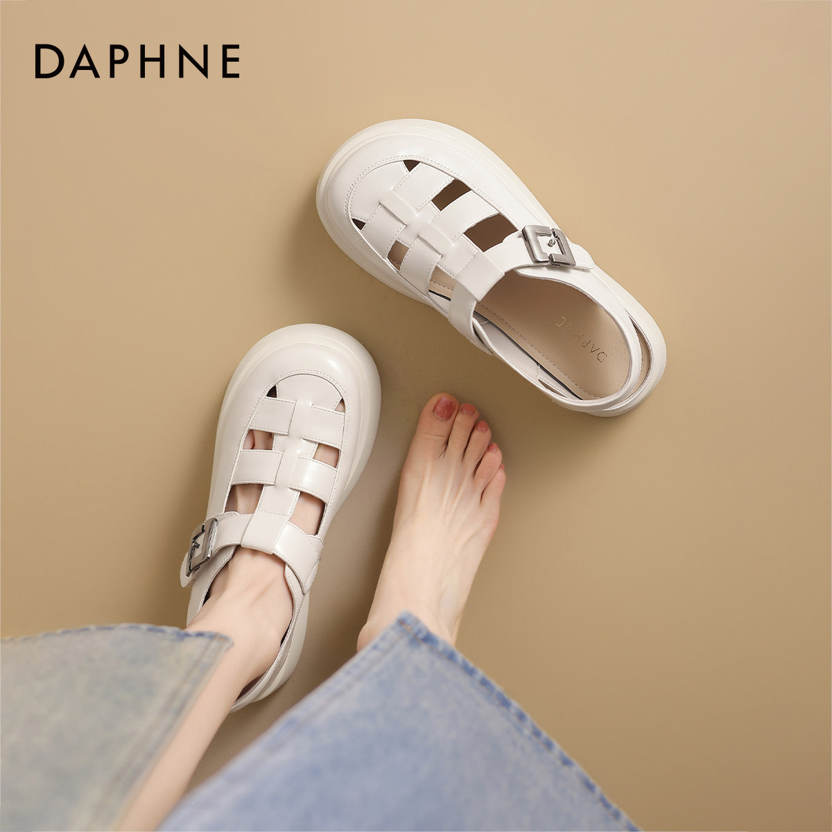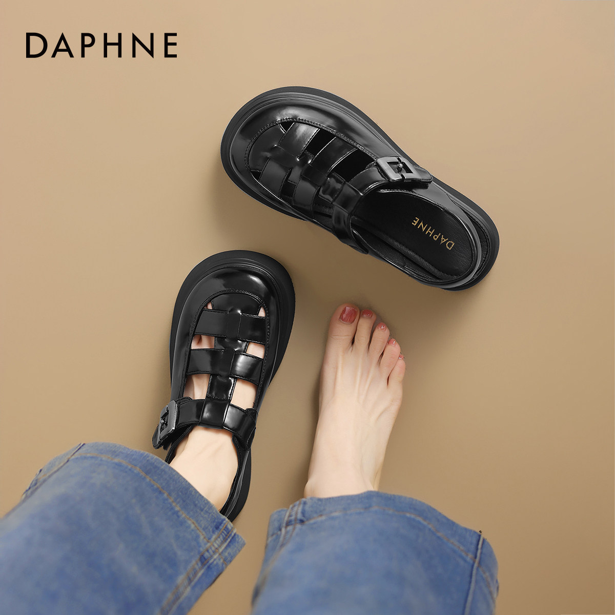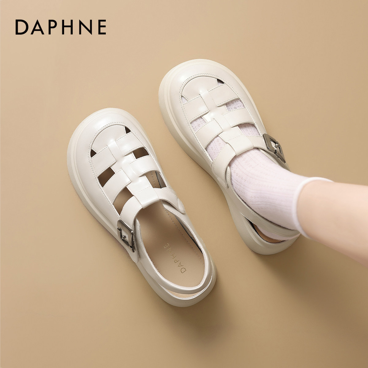 达芙妮凉鞋女款夏季罗马女鞋2026新款包头皮鞋厚底镂空单鞋猪笼鞋