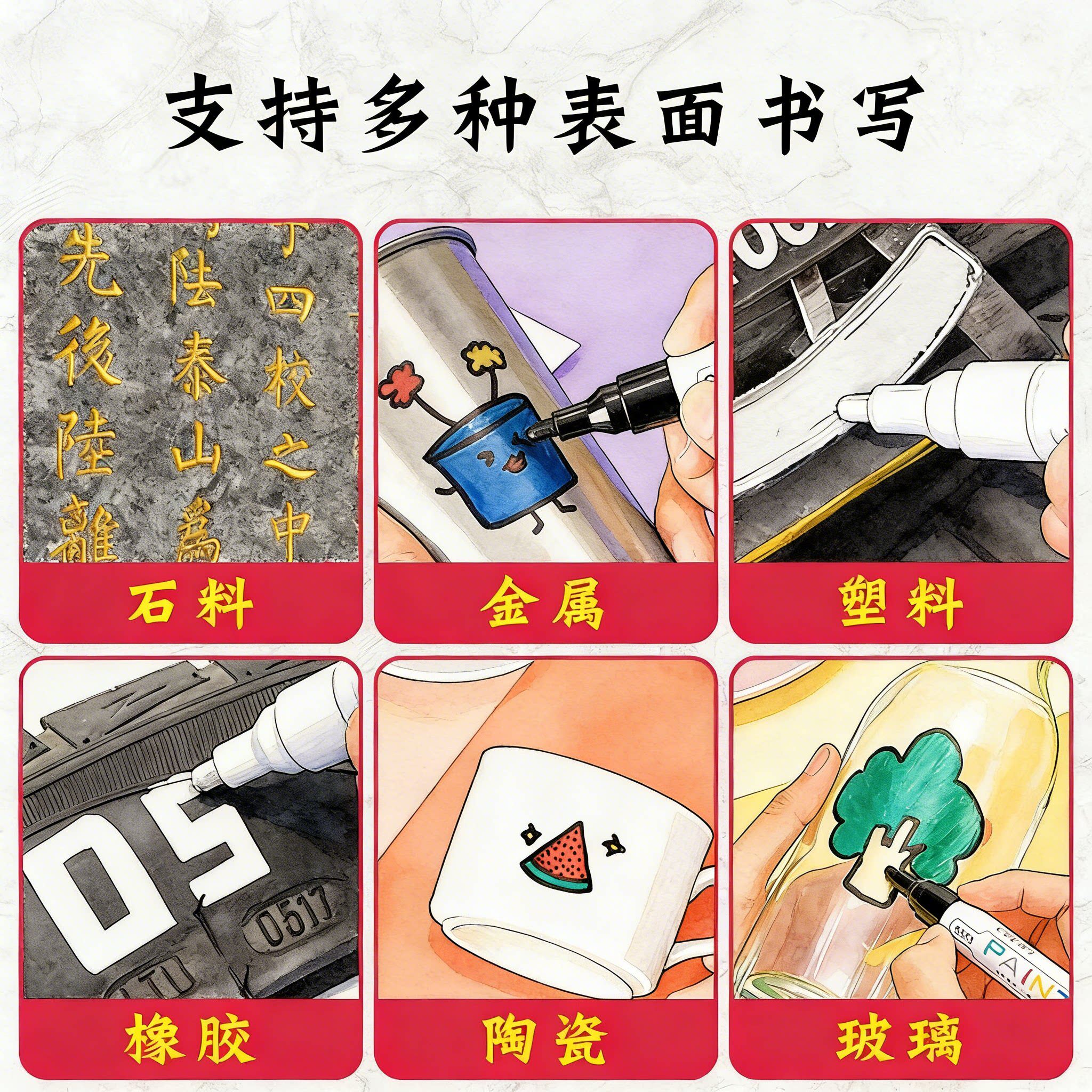 扫墓红色油漆笔工业不掉色墓石碑漆笔碑文金色补漆清明墓碑描碑笔防水防油颜料刷笔上色填色补色油性记号笔