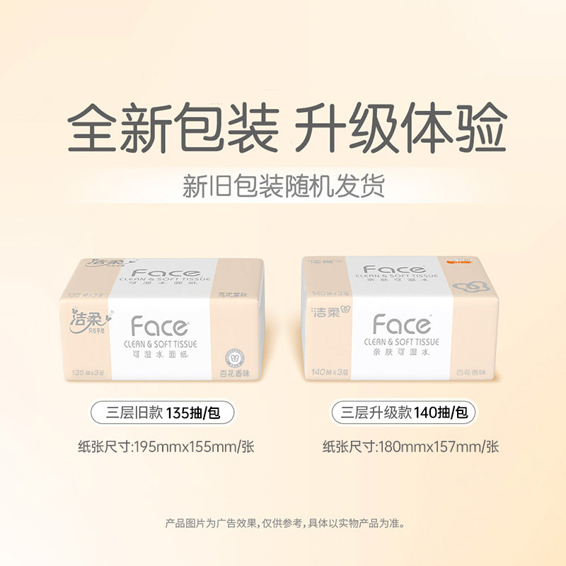 洁柔抽纸百花香140抽18大包粉face整箱家用餐巾纸面巾纸实惠装