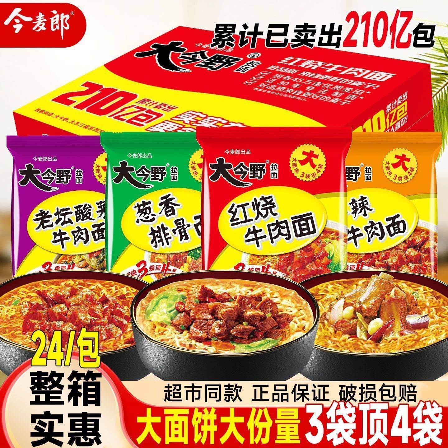 今麦郎大今野方便面整箱批发大今野红烧牛肉面袋装泡面葱香排骨面