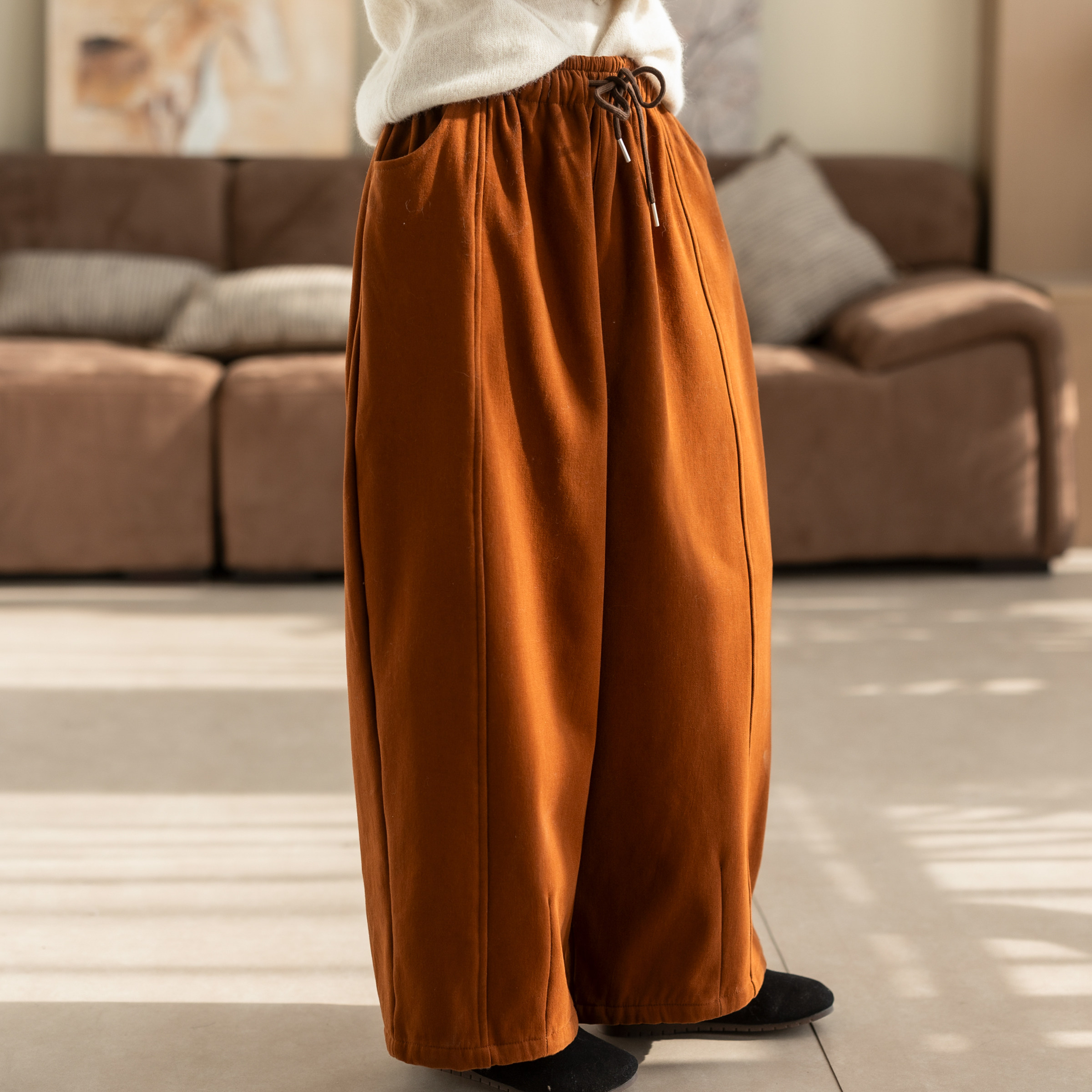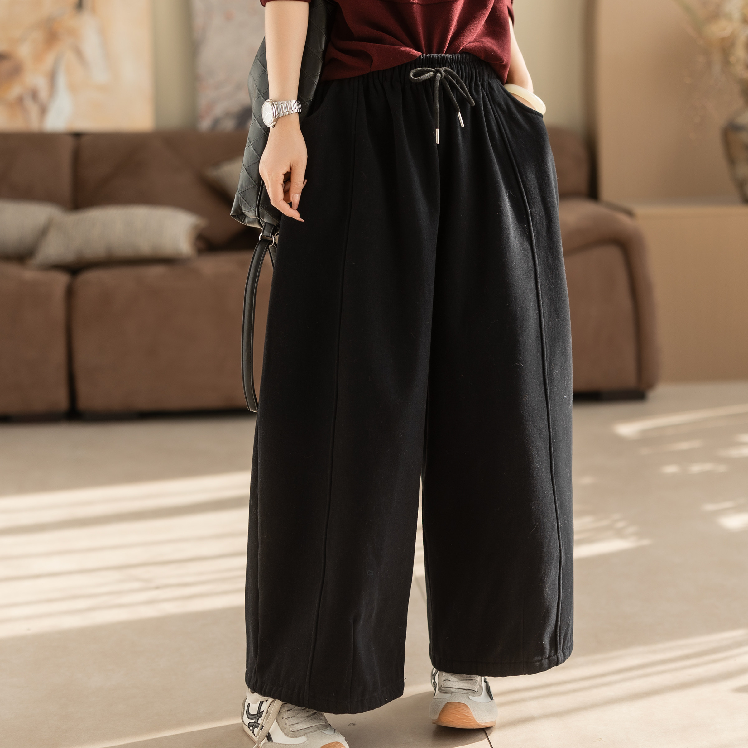 糯米裤女羊羔绒垂坠感软糯加绒加厚秋冬韩系慵懒松弛感阔腿裤TB
