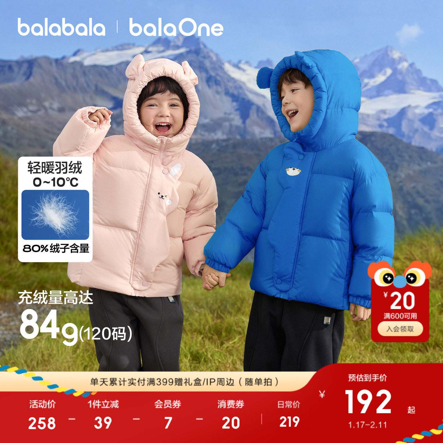 巴拉巴拉童装儿童羽绒服男童女童冬连帽外套保暖加厚宝宝三防2025