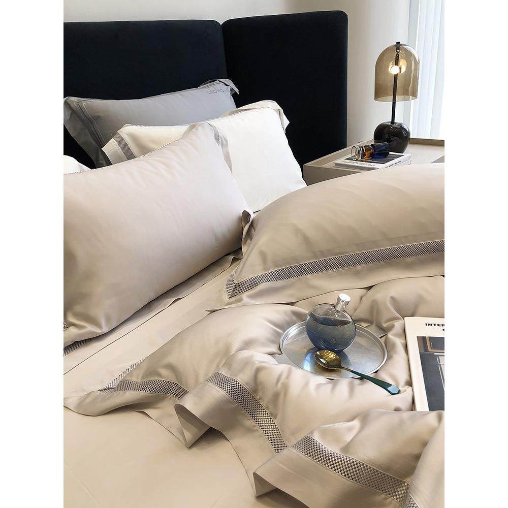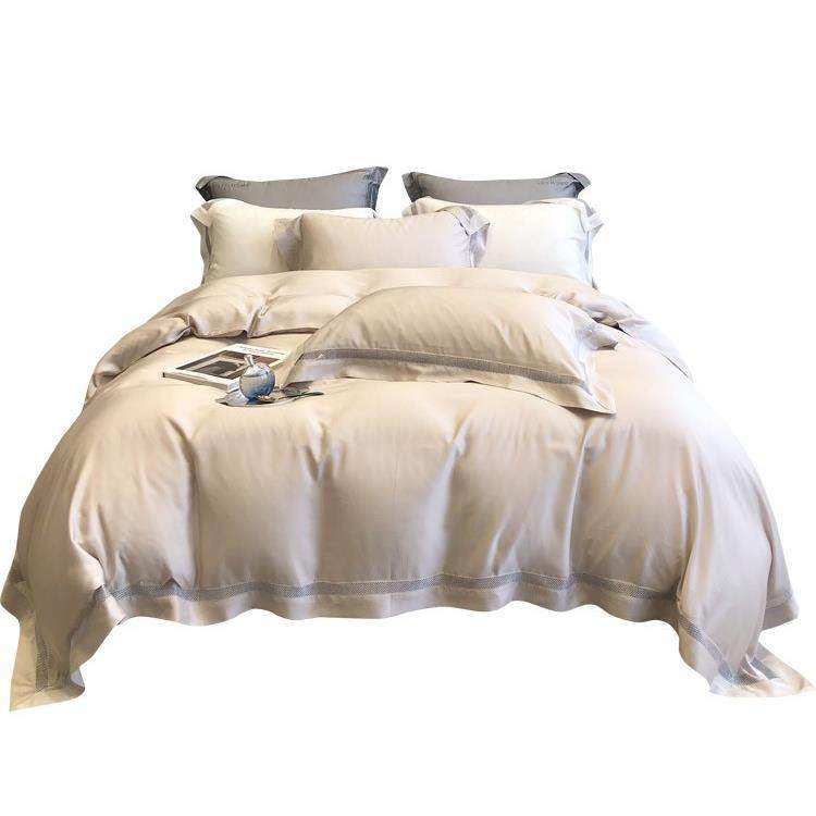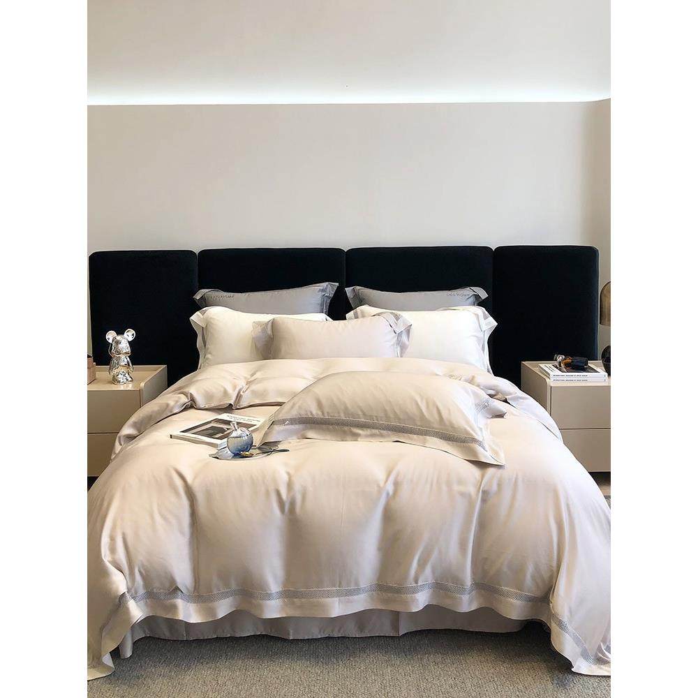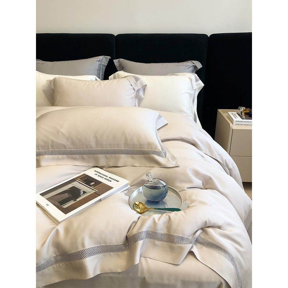 轻奢风纯色120支莱赛尔纤维四件套简约镂空宽边凉感被套春夏床品