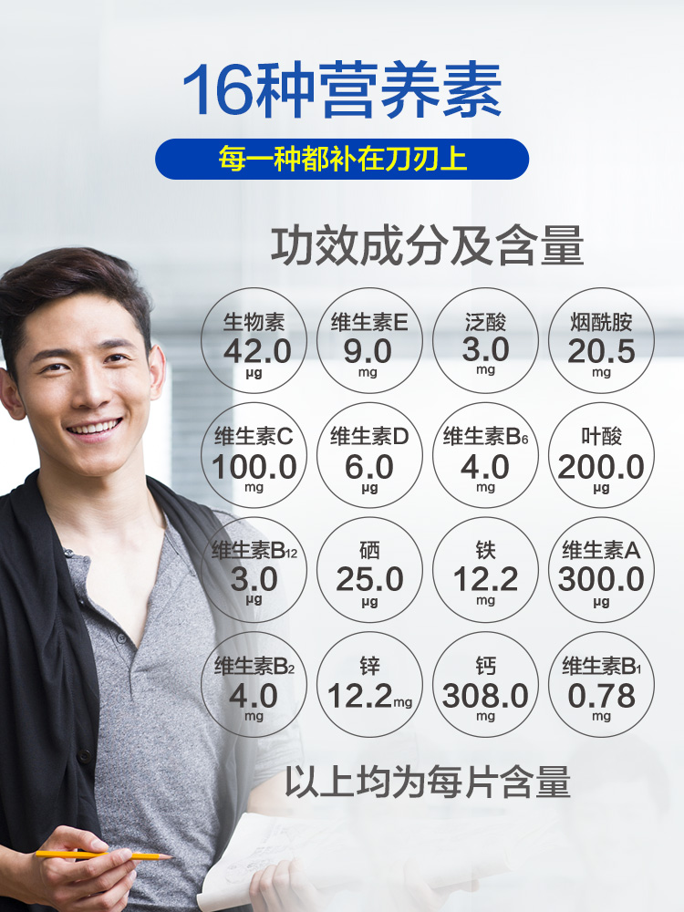 汤臣倍健他多维双层片0碘铜男士复合多种维生素B族vc烟酰胺锌硒钙