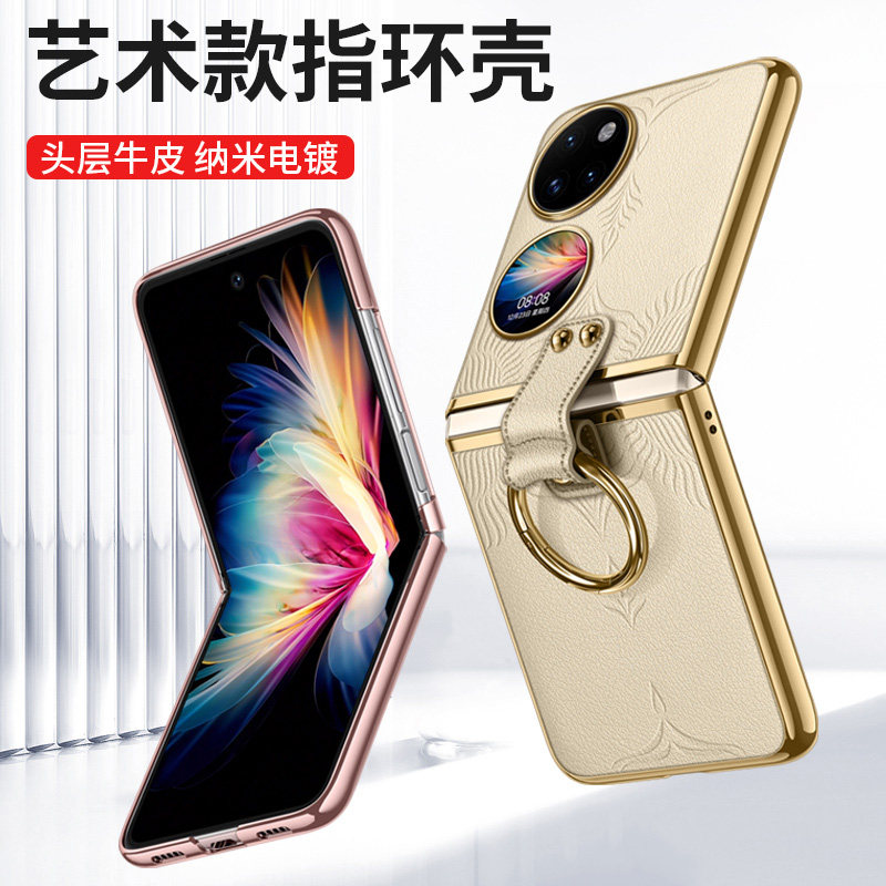 适用新款华为p50pocket手机壳pocket2折叠屏真皮p50宝盒版保护套pockets挂绳支架超薄S外壳全包防摔高级皮套