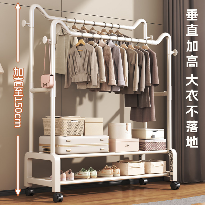 晾衣架挂衣架落地家用卧室室内简易衣帽架衣服架子双层移动置物