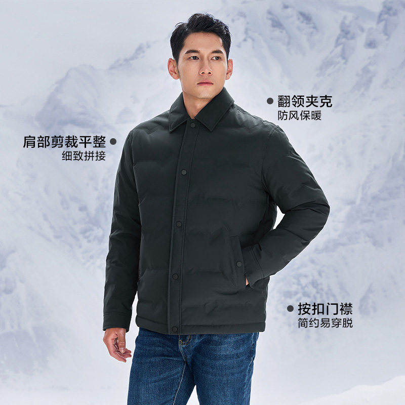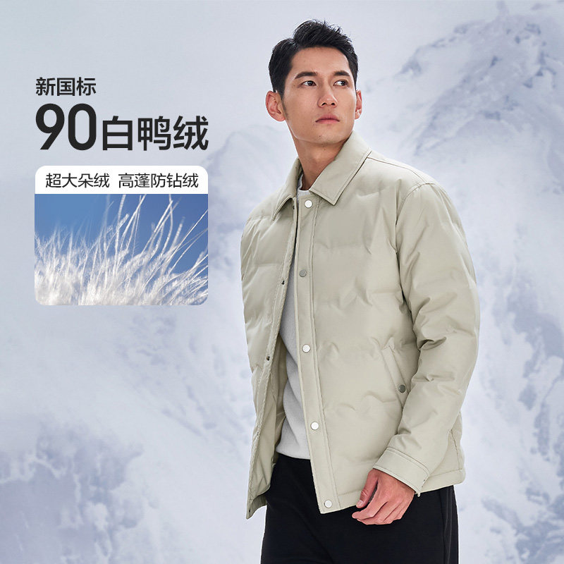 海澜之家商务轻薄保暖羽绒服2025新款冬季翻领休闲90白鸭绒外套男