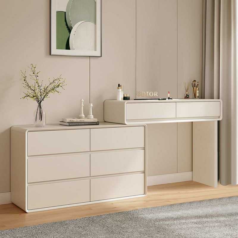 Fls小户型实木梳妆台卧室现代简约2024新款奶油风主卧斗柜一体化