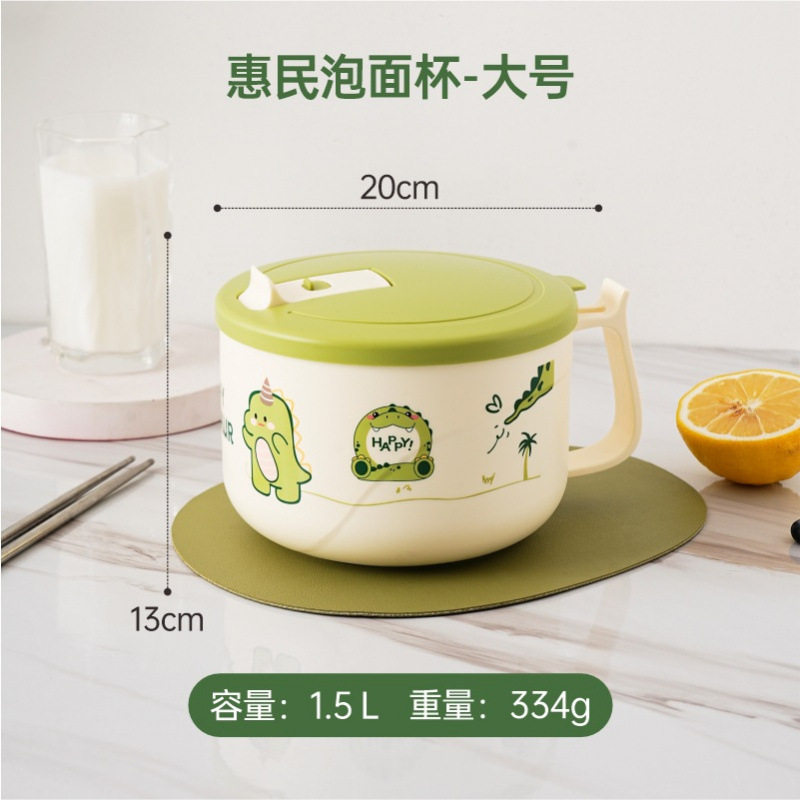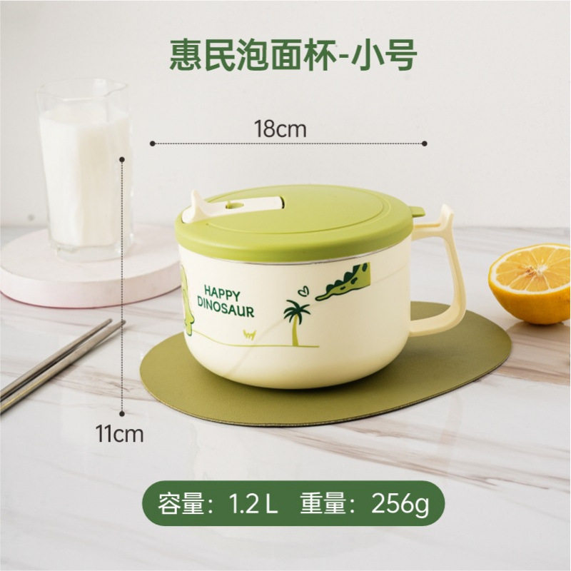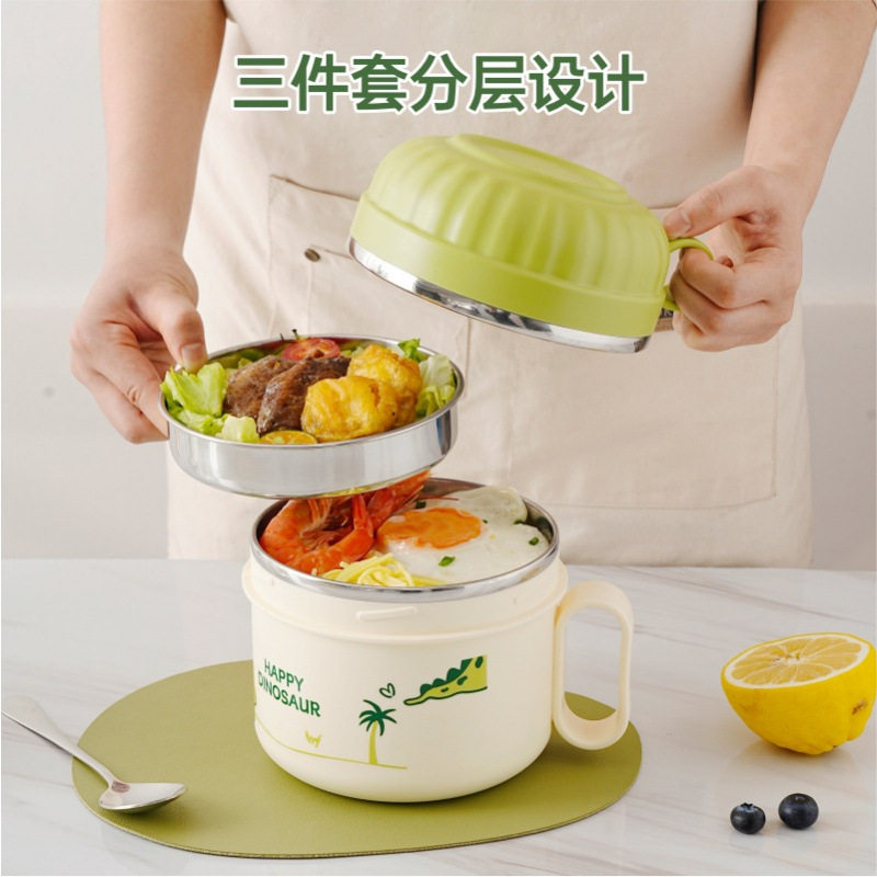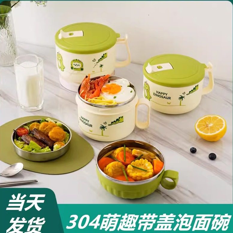 304不锈钢泡面碗带盖带手柄卡通学生宿舍办公室泡面神器