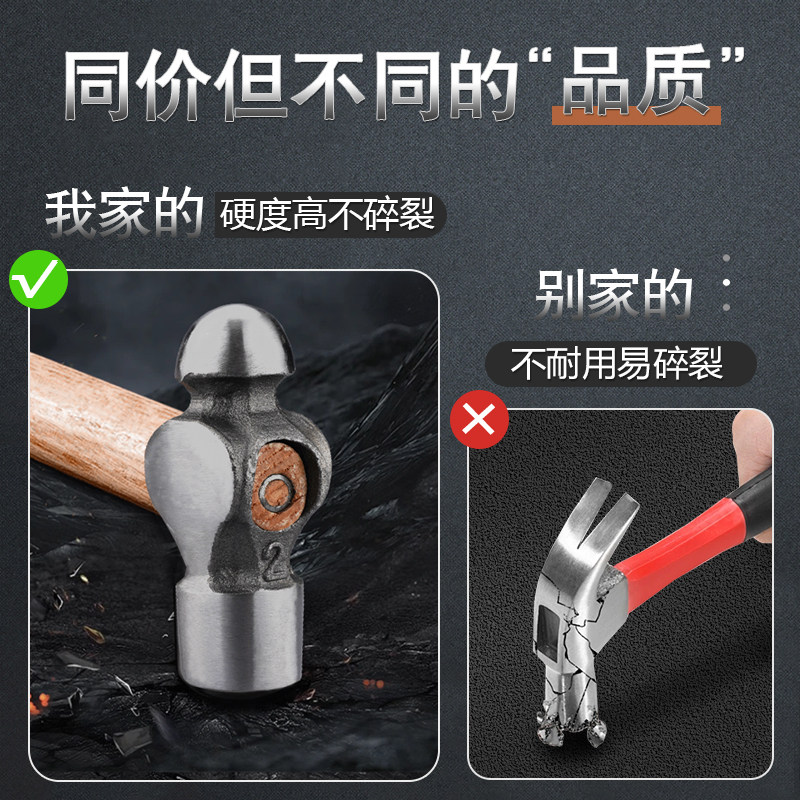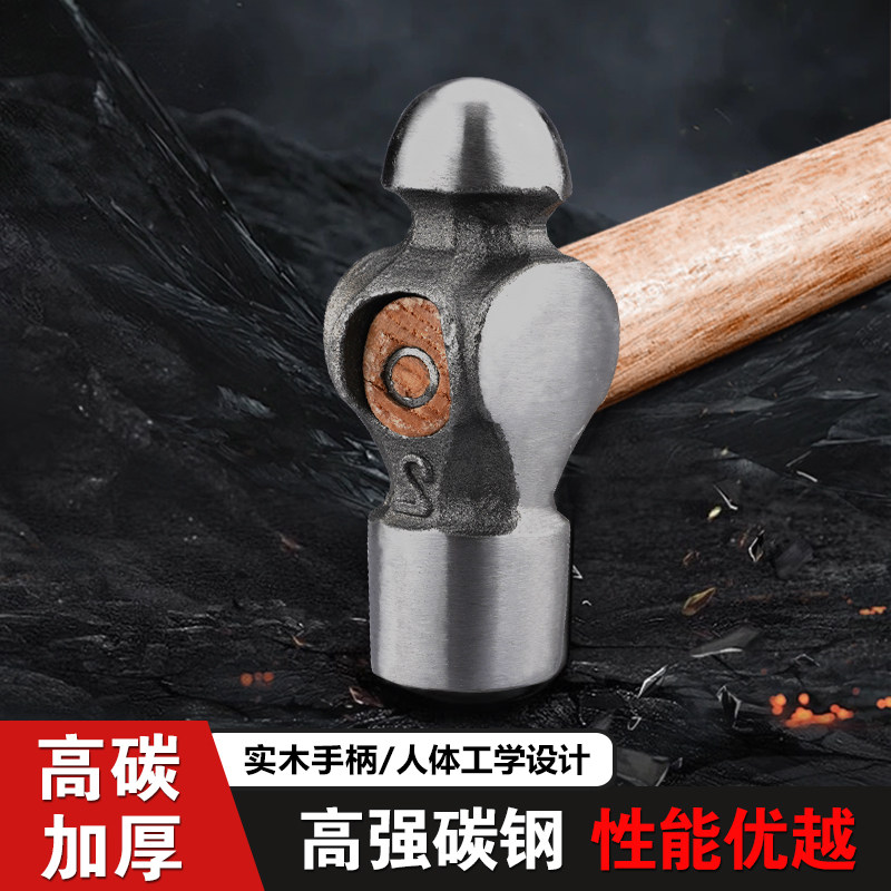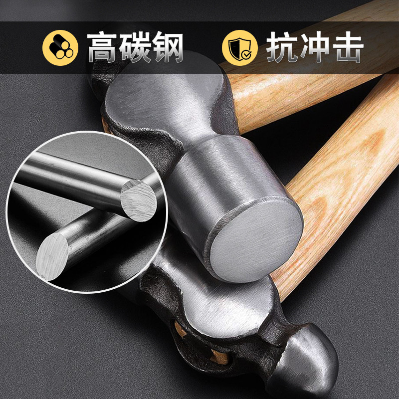木柄圆头铁锤圆头锤奶头锤砸核桃迷你家用五金手工小锤子手柄铁路
