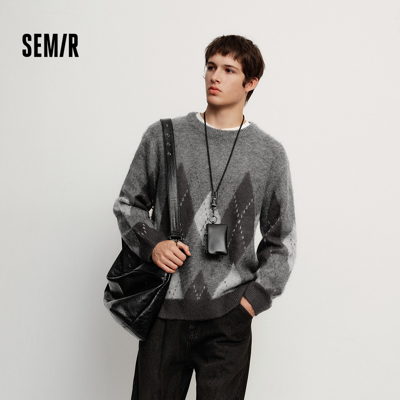 森马毛衫男冬季满版提花针织衫撞色毛衣宽松套头衫百搭提花潮-TK