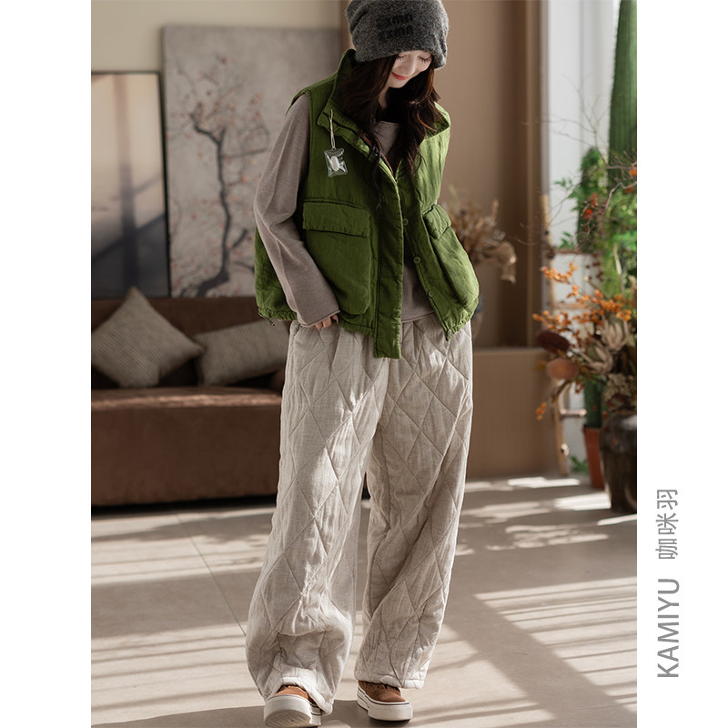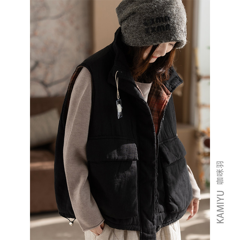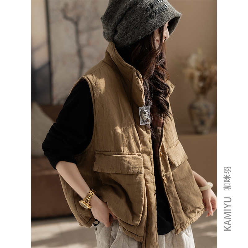 咖咪羽棉马甲女秋冬新款填充蚕丝棉无袖坎肩流行纯色宽松马夹厚