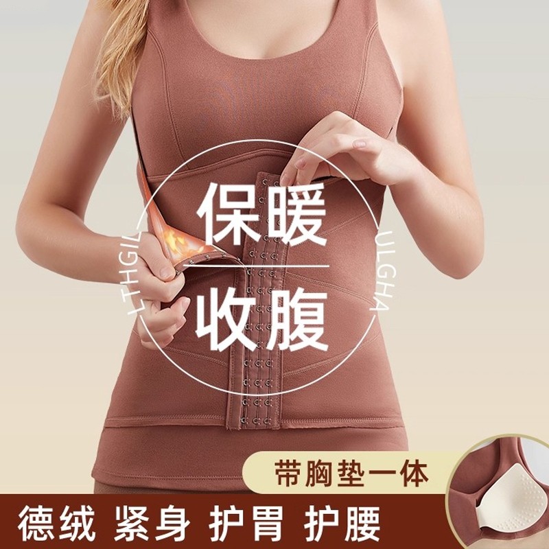 德绒无痕塑身保暖上装女带胸垫排扣收腹打底加厚内衣发热束腰文胸