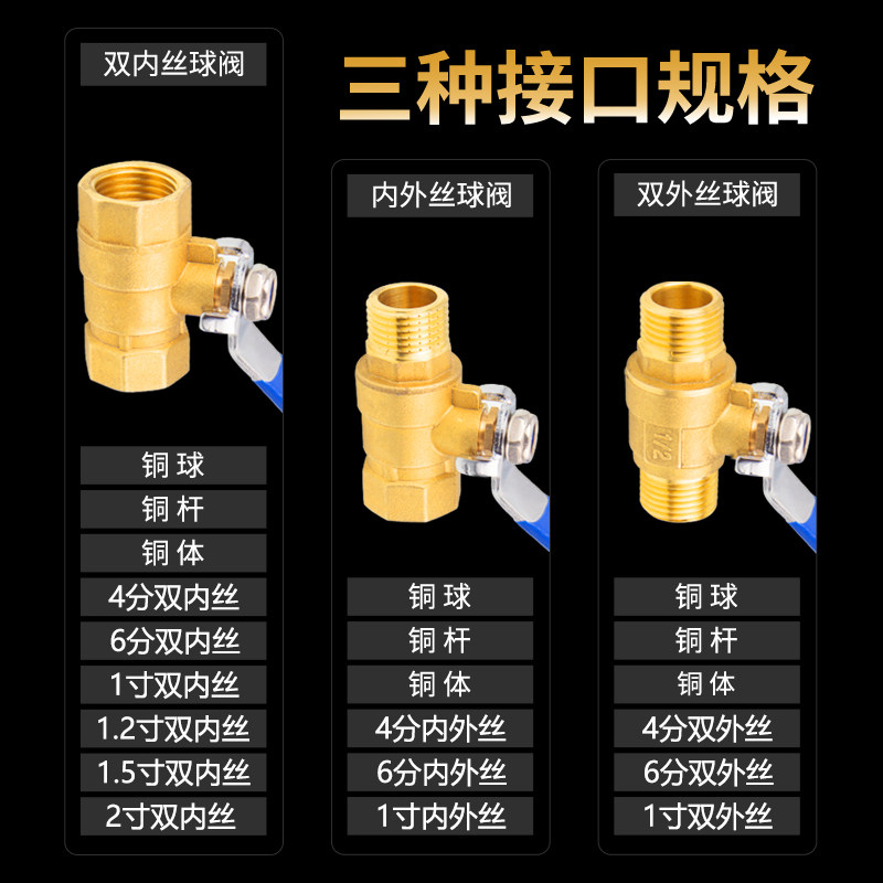全铜球阀水阀门开关4/6分dn15/20耐高温1寸2加厚内外丝25自来水50