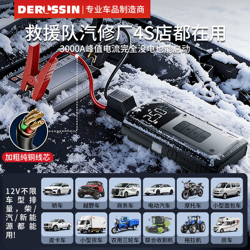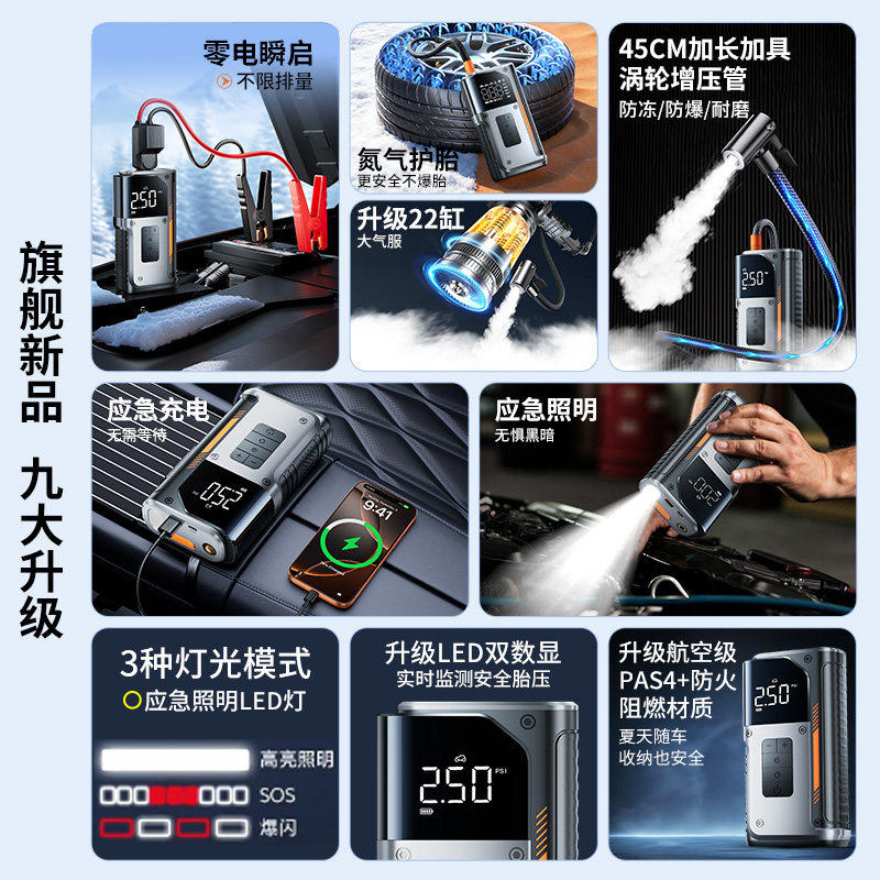 汽车应急启动电源充气泵一体搭电神器强启动专用12v24v功率搭电宝