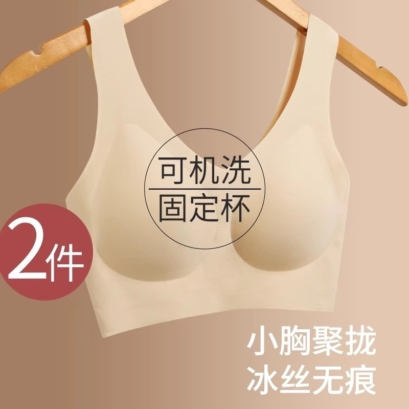 无痕内衣女小胸聚拢夏季薄款运动一体美背心式固定杯无钢圈文胸罩
