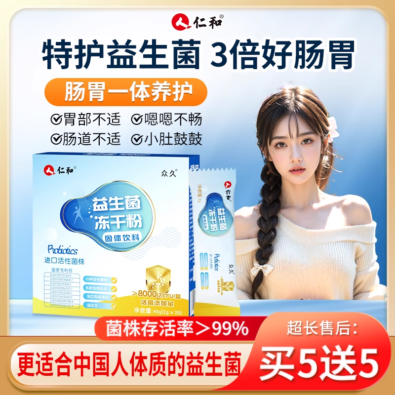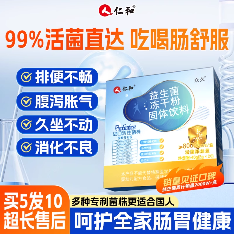 仁和益生菌大人女性儿童孕妇成人肠胃肠道官方旗舰店非调理冻干粉