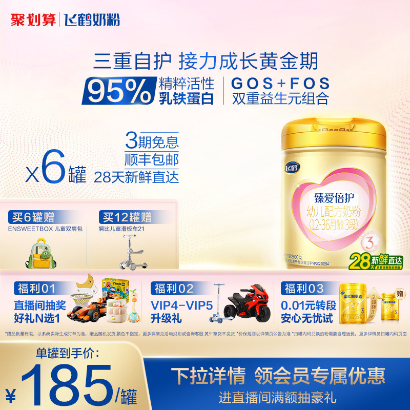 【官方正品】飞鹤臻爱倍护3段乳铁蛋白婴幼配方牛奶粉900g*6罐
