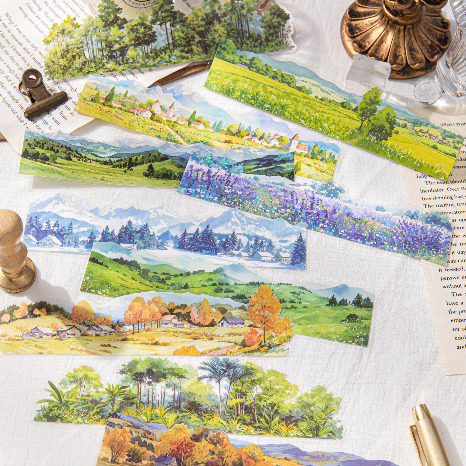 自然之景高级感创意植物楼房PET长条贴纸包造景手帐diy水杯装饰贴
