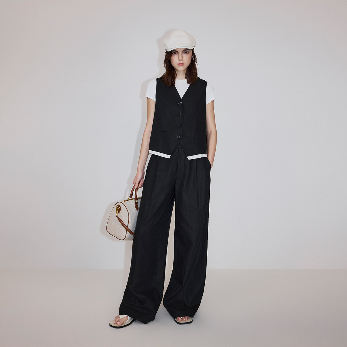 【新品】OCHIRLY欧时力棉麻阔腿西装长裤超模裤宽松直筒2026春夏*