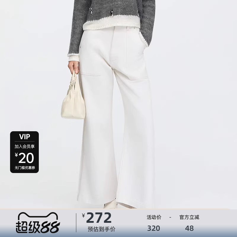 SIINSIIN弯刀卫裤2025新款女冬加绒垂感长裤运动休闲加厚裤子白色
