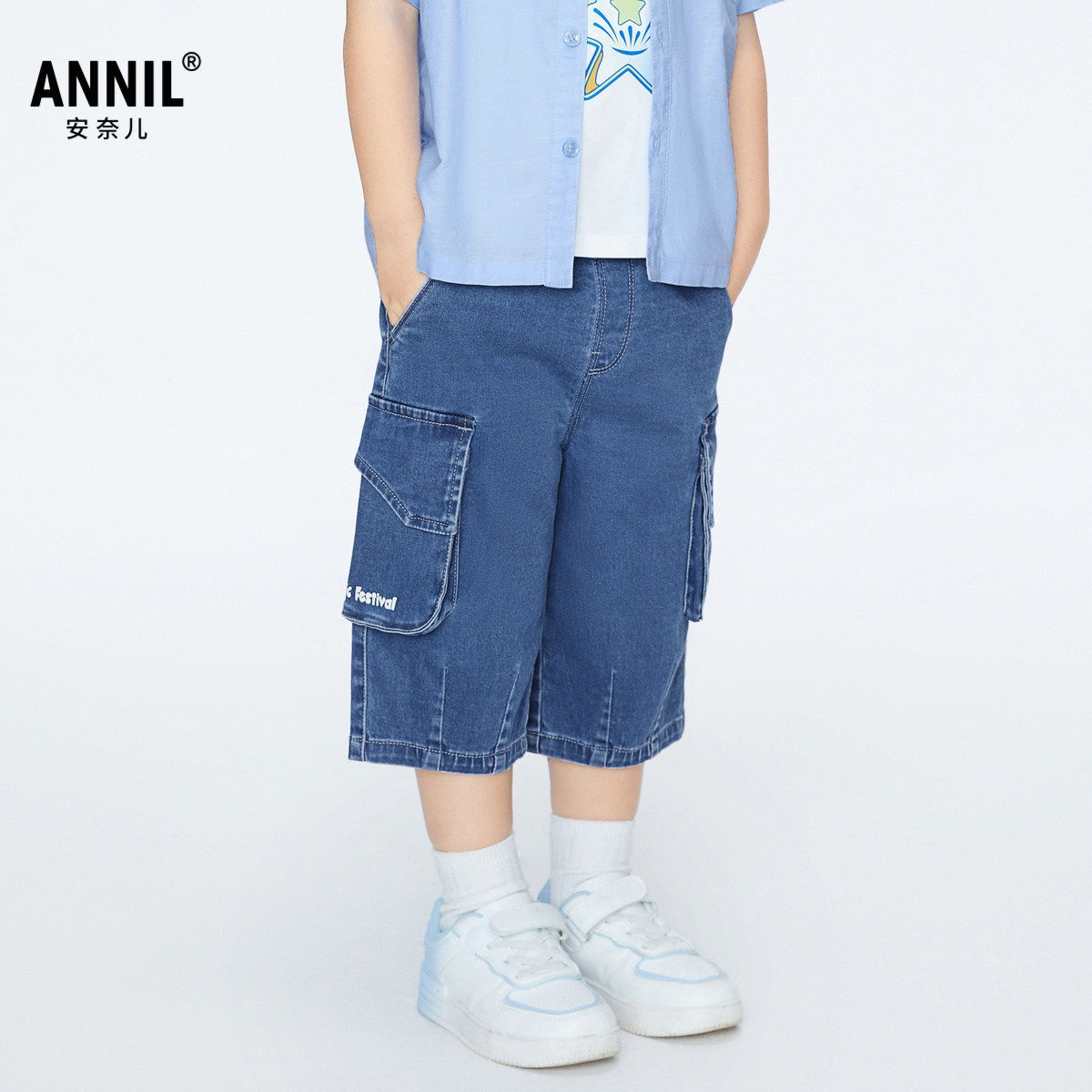【商场同款】安奈儿童装男童牛仔裤子夏七分时尚XB426565