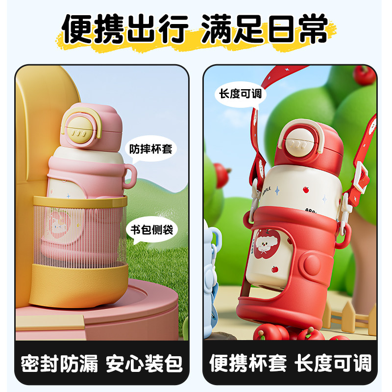 儿童保温杯女孩2025新款水杯小学生上学专用便携壶幼儿园吸管杯子