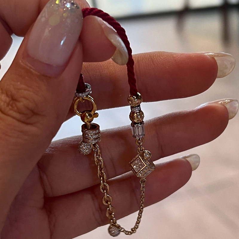 方糖块满钻红色编绳手链新款轻奢高级感半链条手绳手饰品