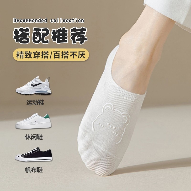 情侣袜子纯棉男女船袜夏季短袜薄款隐形浅口防臭吸汗硅胶防滑袜子
