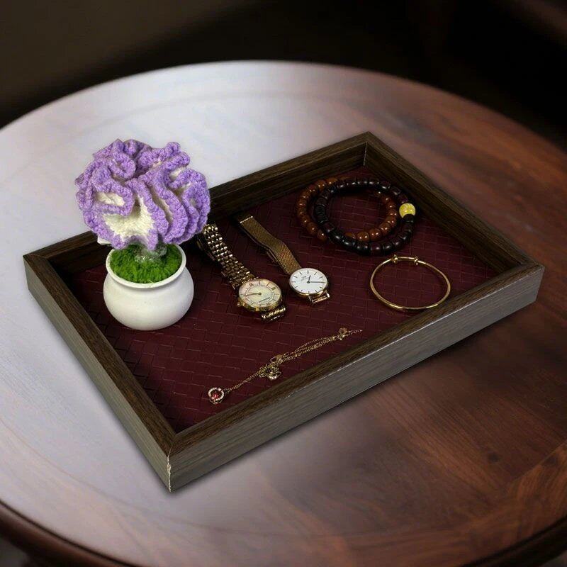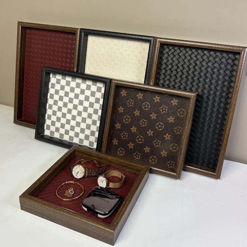 托盘皮革木质收纳盘香薰首饰珠宝散珠盛放瓜子花生⑥茶盘胡桃木