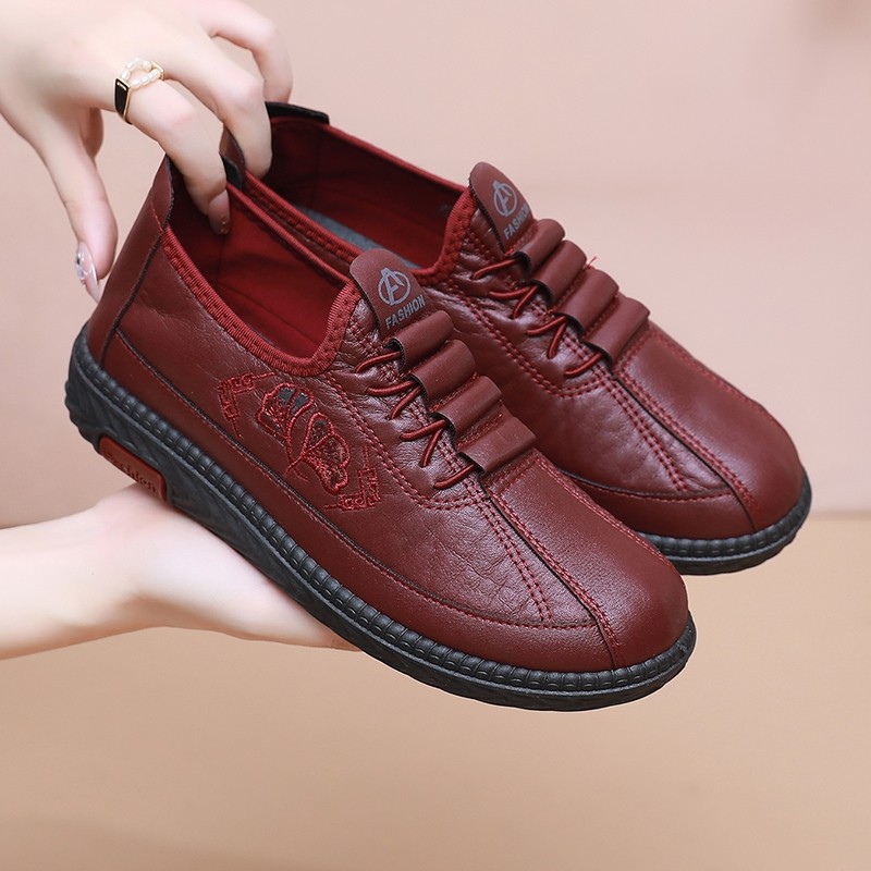 牛筋底妈妈鞋真皮防滑软底休闲中老年单鞋舒适蝴蝶结中年春秋皮鞋