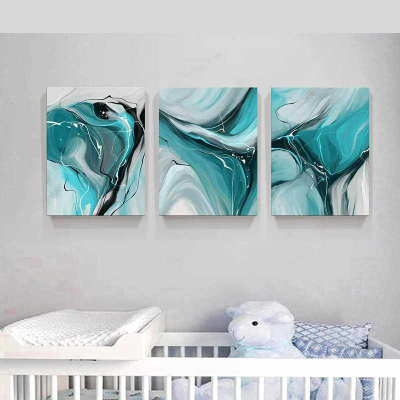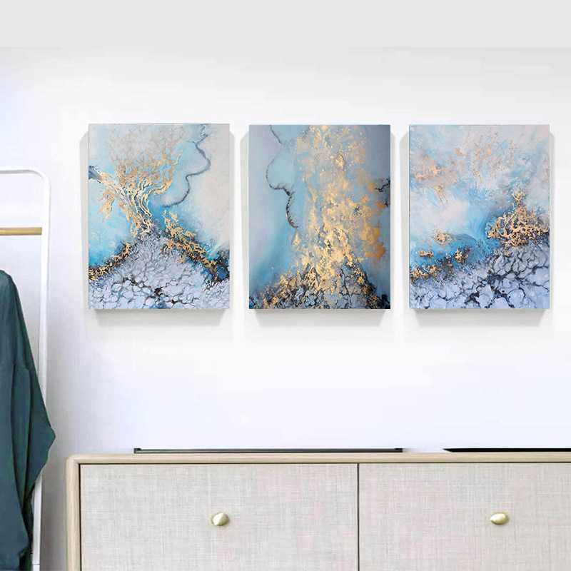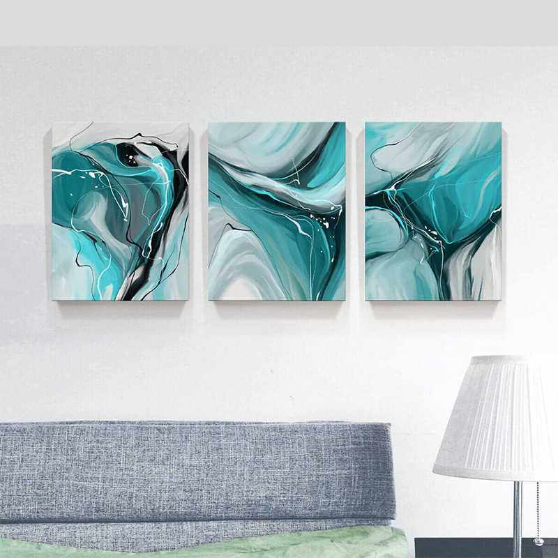 现代简约水彩抽象挂画客厅装饰画大气高级感沙发背景墙三联画无框