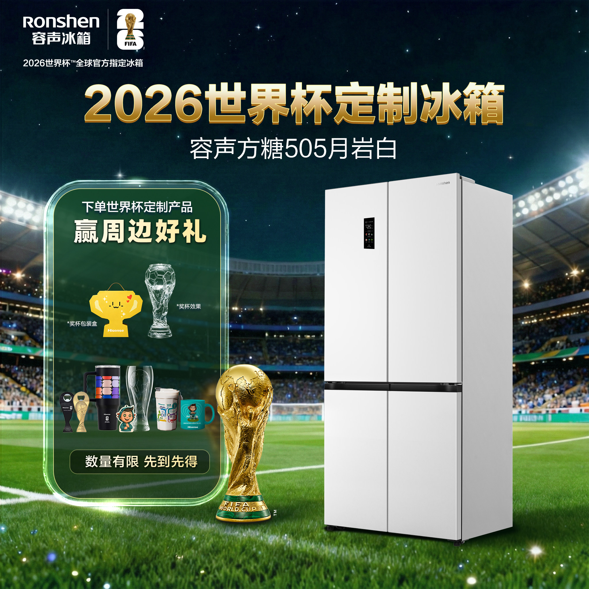 容声方糖505L主动双净双系统十字四开门家用超薄嵌入电冰箱世界杯