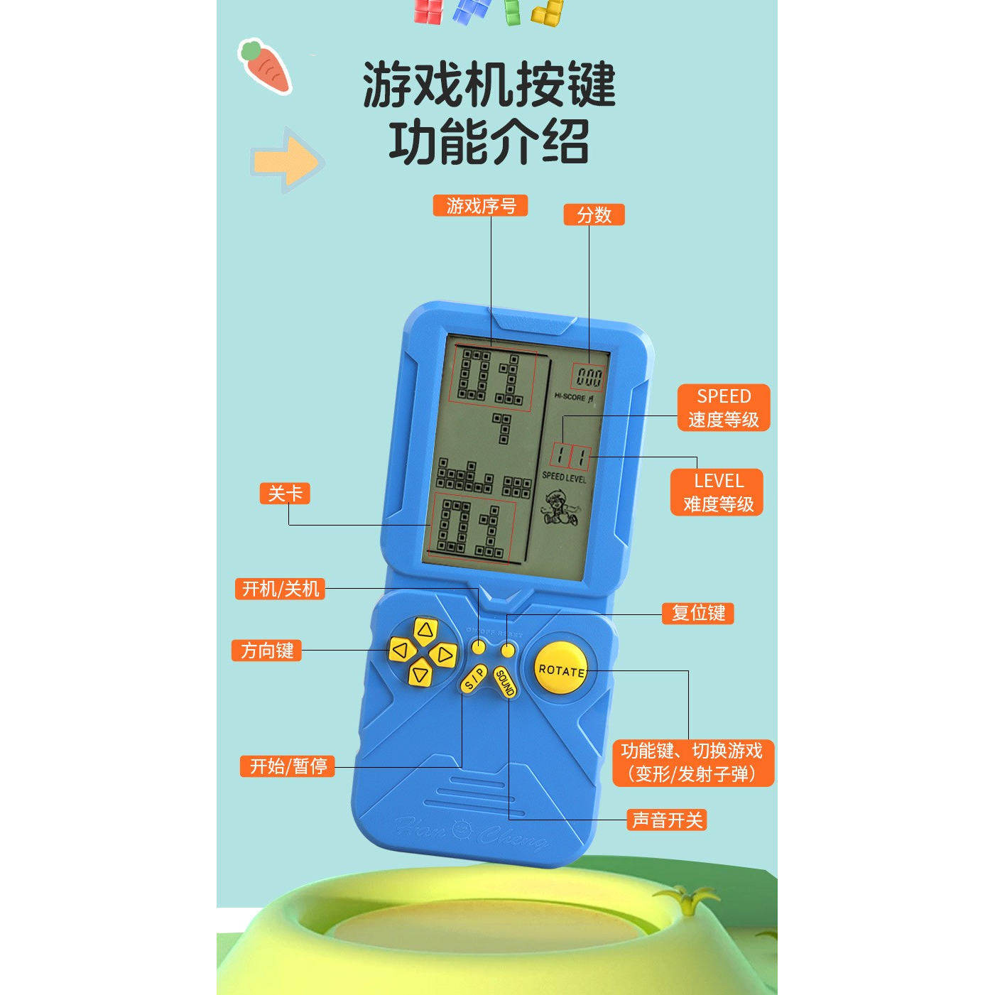 新款5寸俄罗斯方块游游机可充电大屏幕开发智力益智复古怀旧礼物