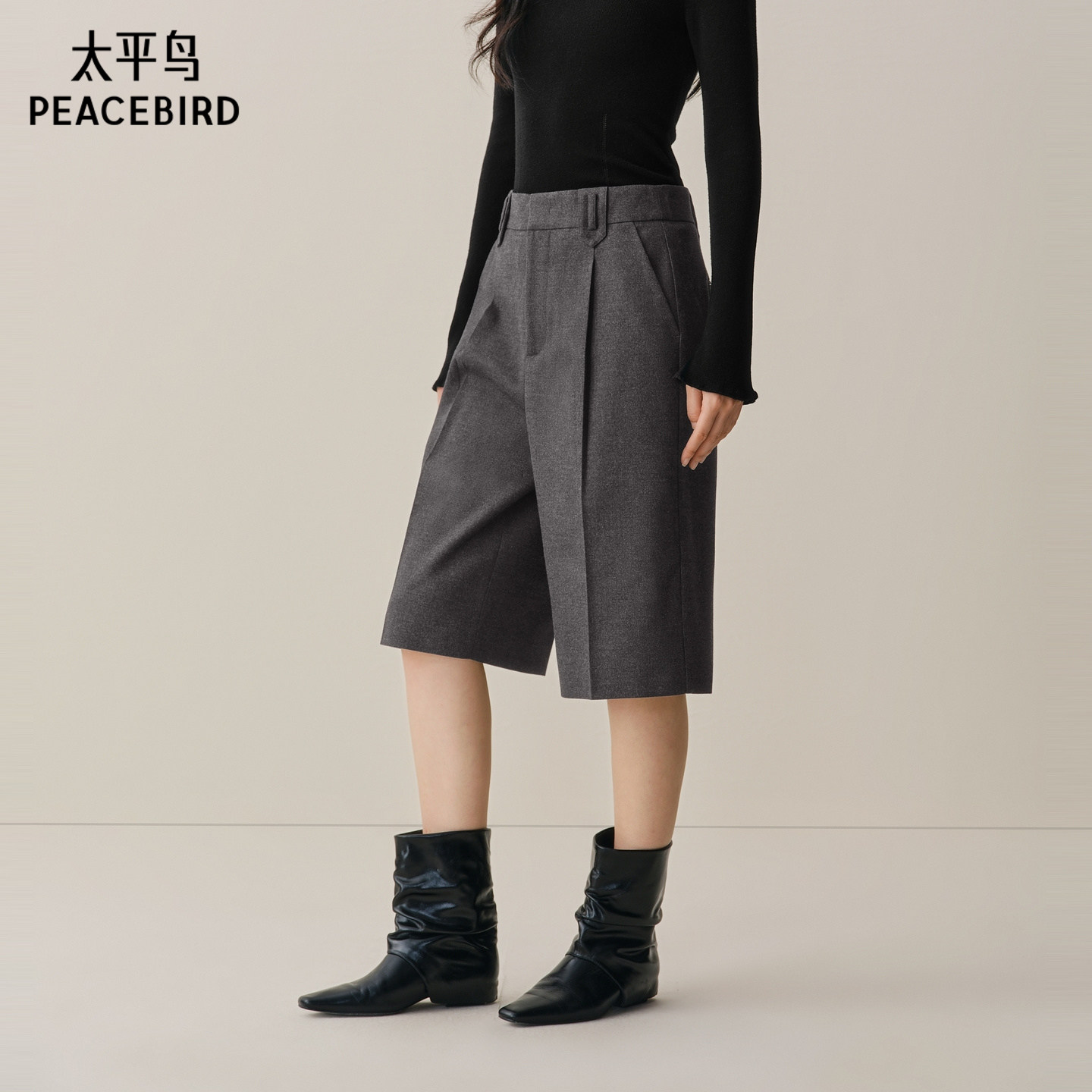 【商场同款】太平鸟2025年冬季新款保暖磨毛TR五分中裤A1GBF4A17