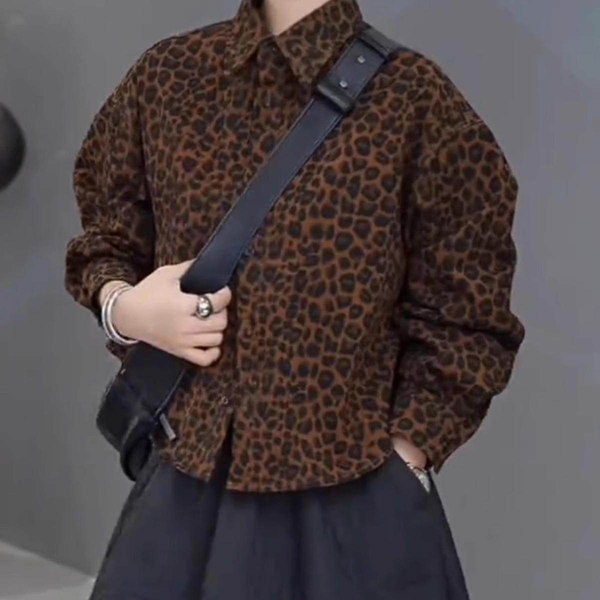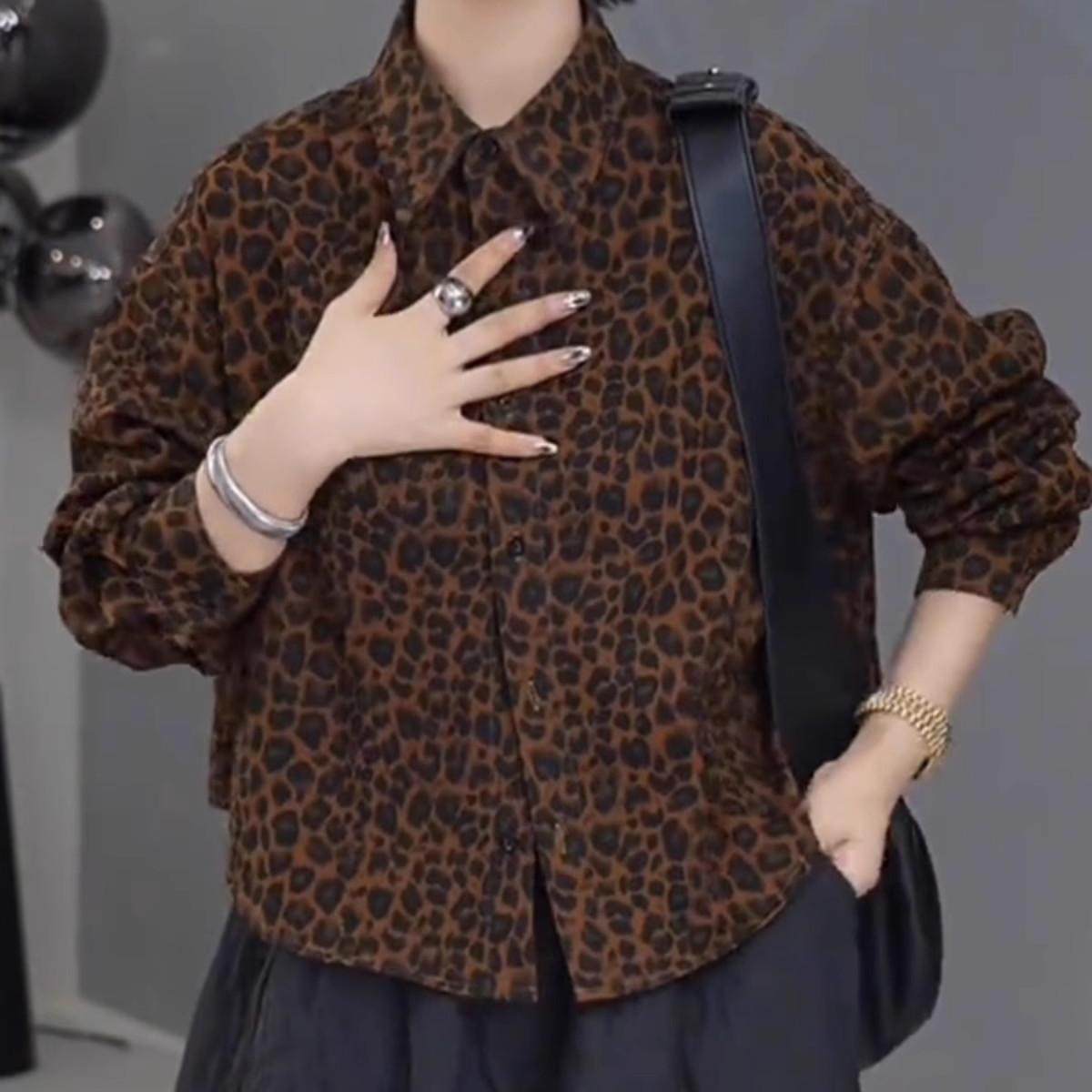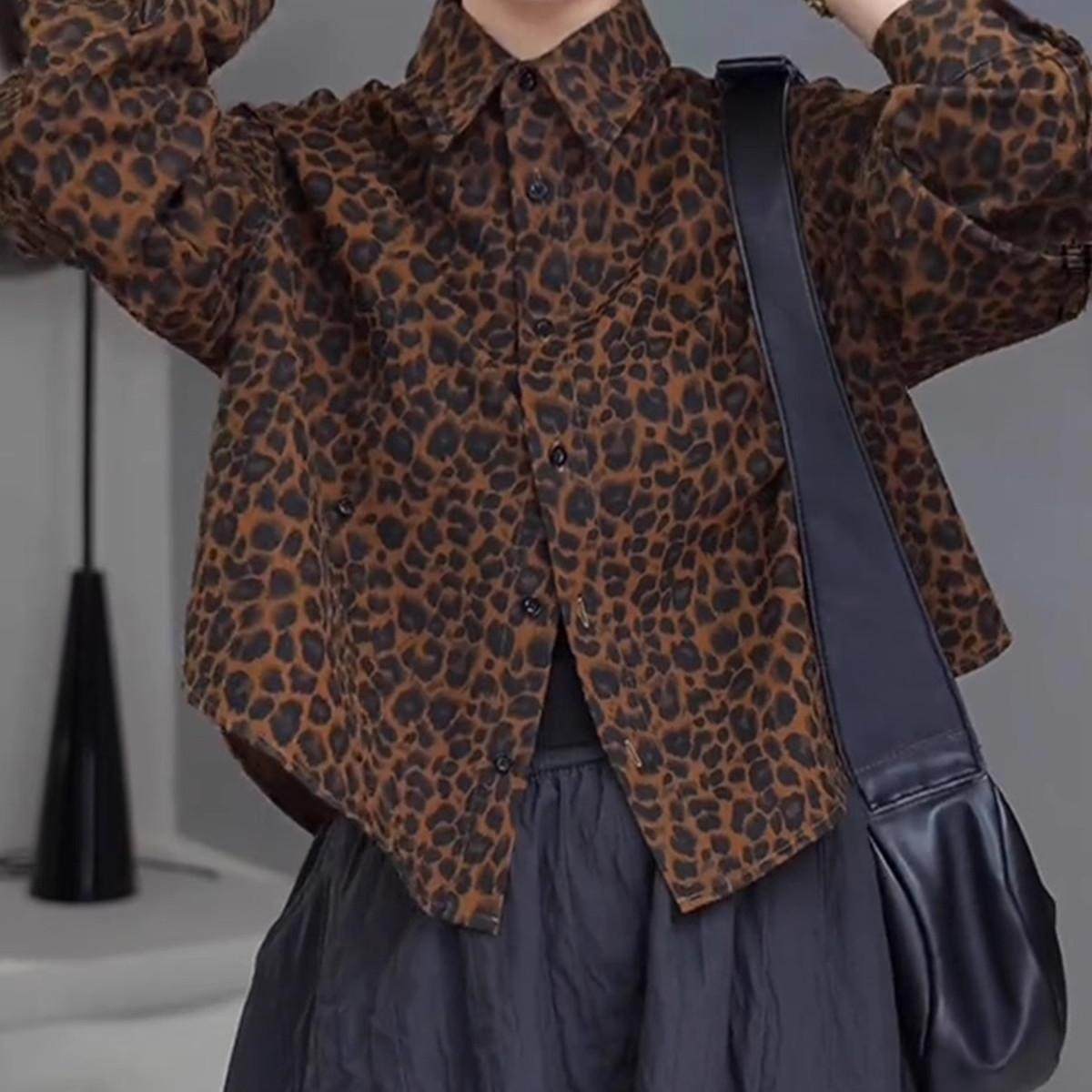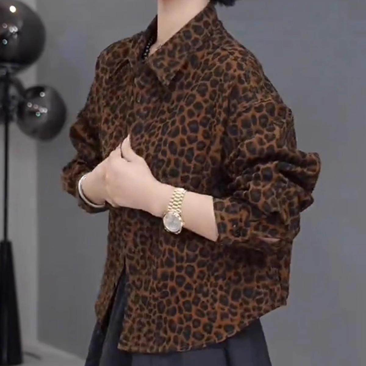 高级感复古豹纹衬衫外套女秋季2025新款小众休闲宽松百搭翻领上衣