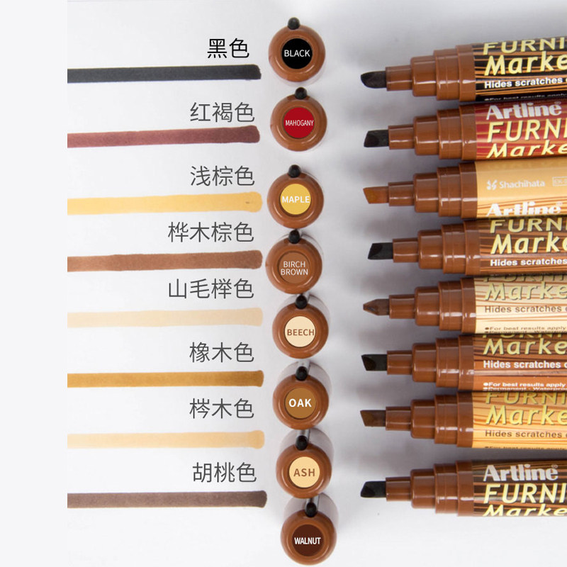 日本旗牌artline木质家具补色笔ek-95油性笔家具餐桌椅子板凳实木门刮花修复颜色木地板补漆上色调色修补笔