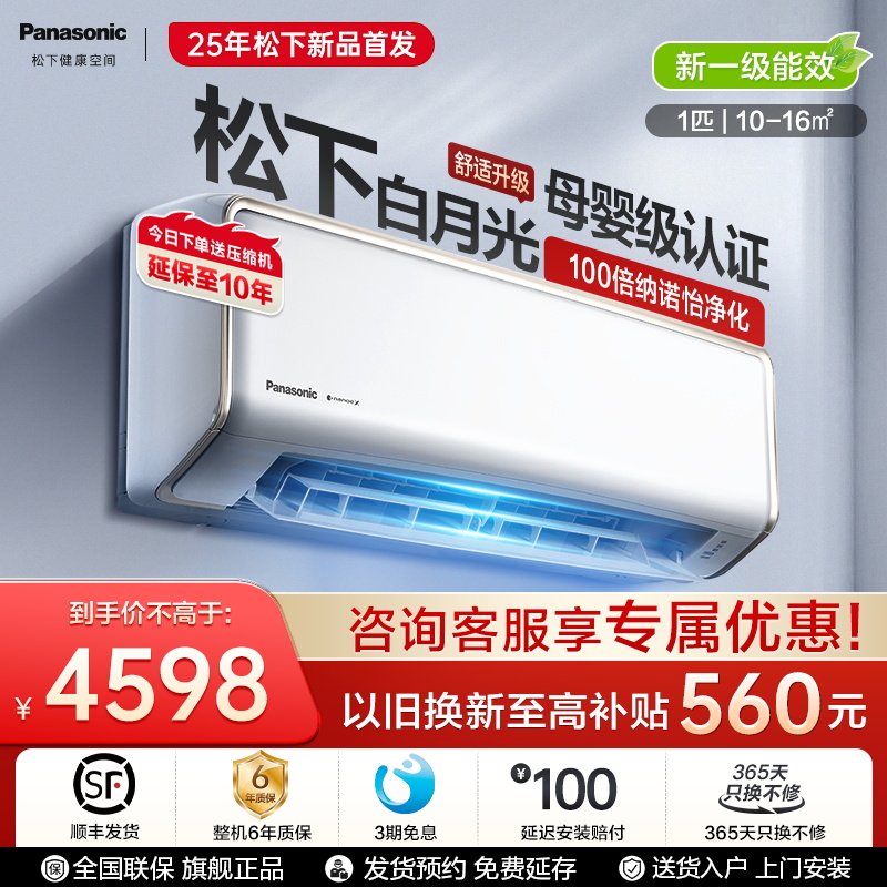 【政府补贴】松下新品白月光新一级能效1匹挂机空调DG26K410Q