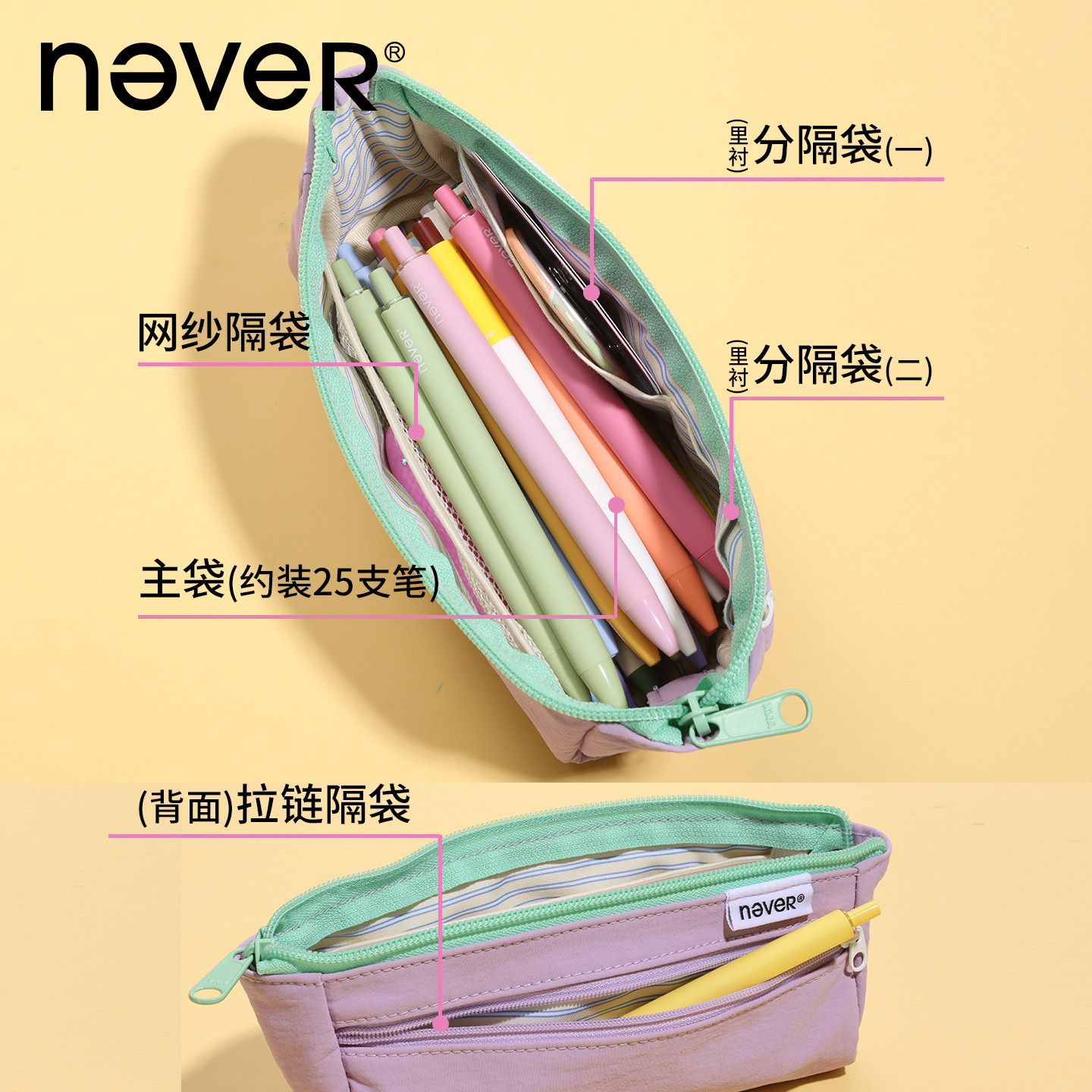 never小方舟笔袋韩系高颜值ins风2025年新款简约高级感笔袋初中女生男生