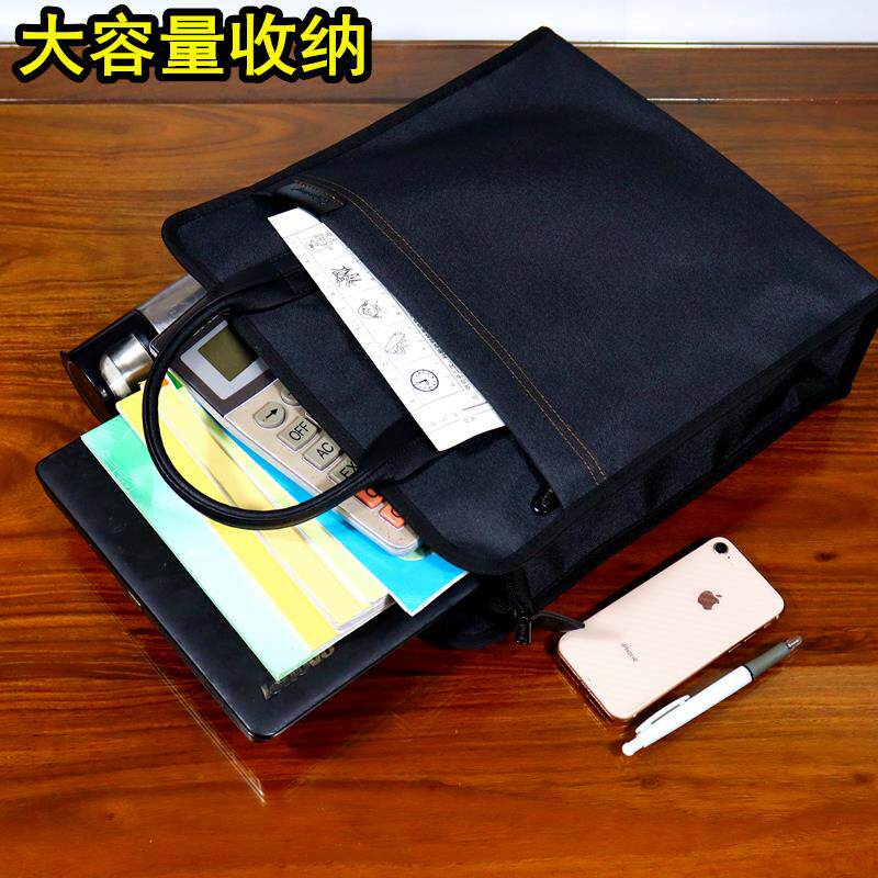 手提公文包竖款帆布文件袋A4资料袋防水办公会议包定制内可放水杯