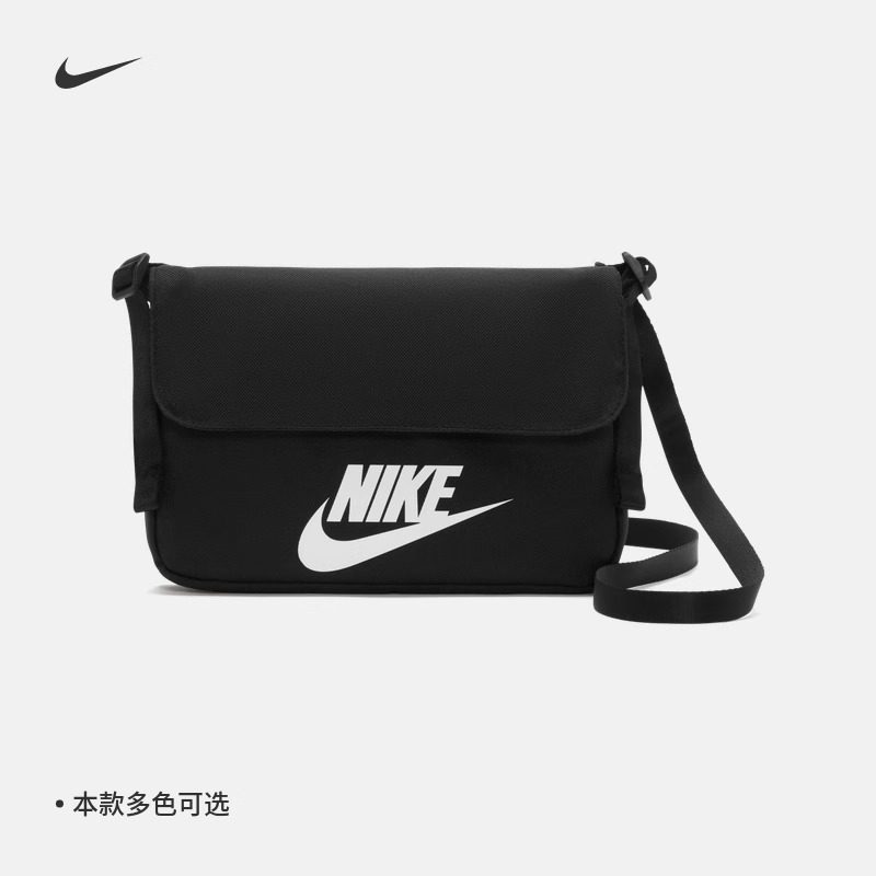 Nike耐克斜挎包女包新款印花邮差包学生黑色简约小包单肩包CW9300