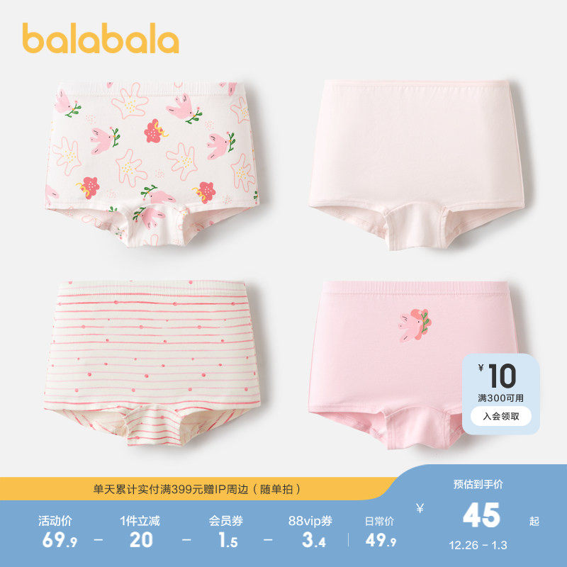 巴拉巴拉女童内裤棉a类儿童四角短裤小童宝宝不夹PP平角裤四条装